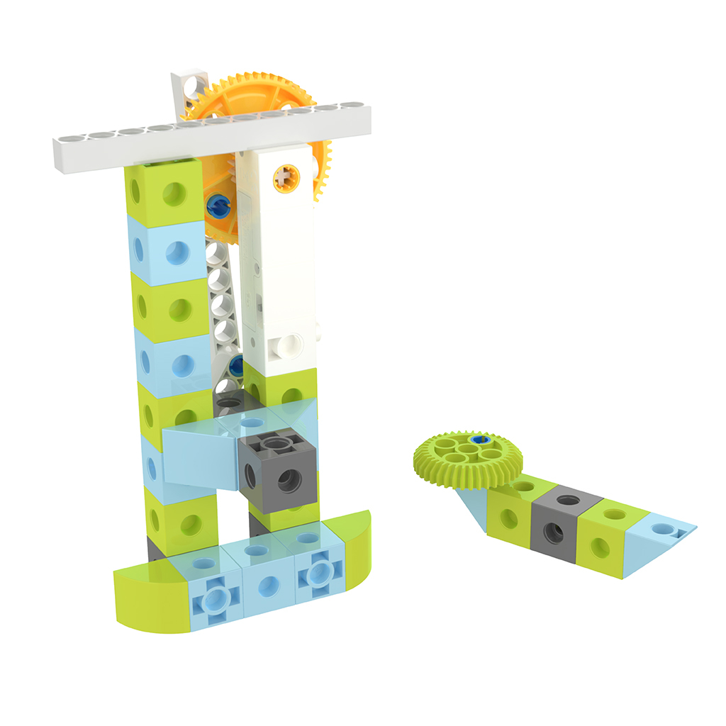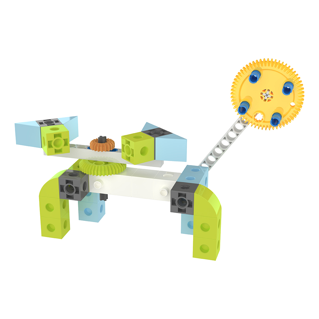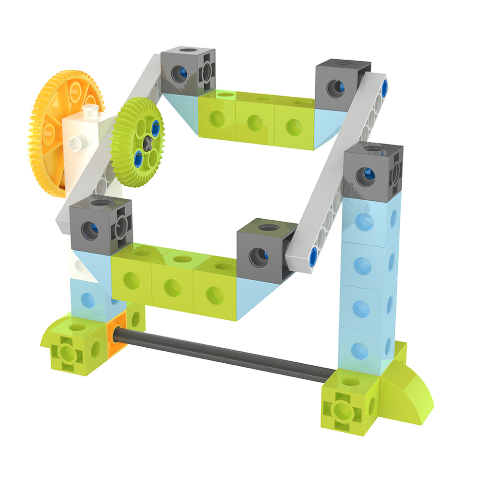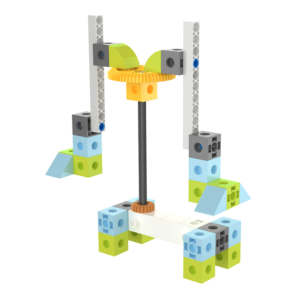 В комплект входит компактный электромотор, который легко соединяется с кубиками Gigo. Моторчик питается от одной батарейки AAA (не входит в комплект) и позволяет ребёнку экспериментировать с различными видами движения: вращением, покачиванием, подъёмом и спуском. Благодаря этому дети могут самостоятельно исследовать, как работают разные механизмы и от чего зависит движение каждой конструкции.