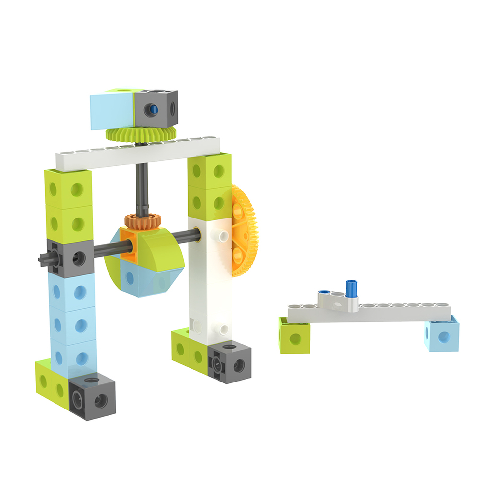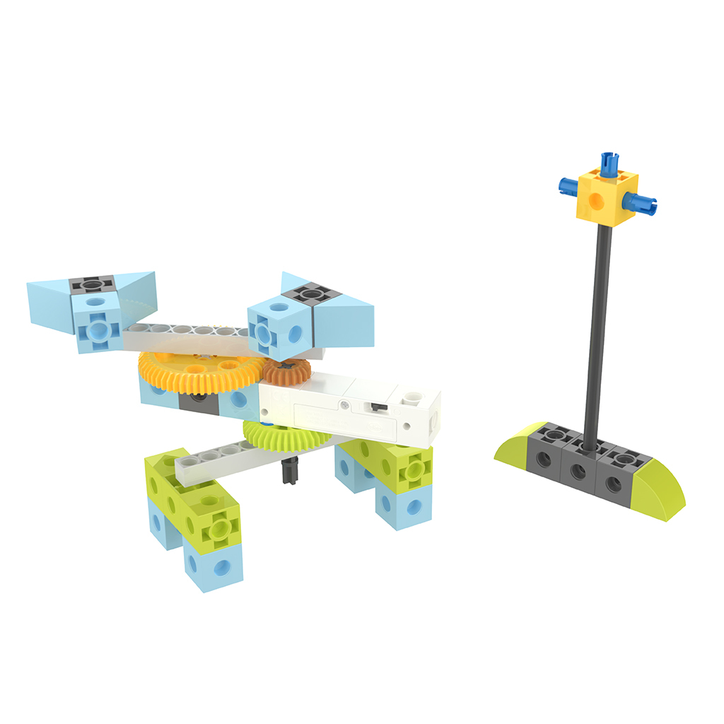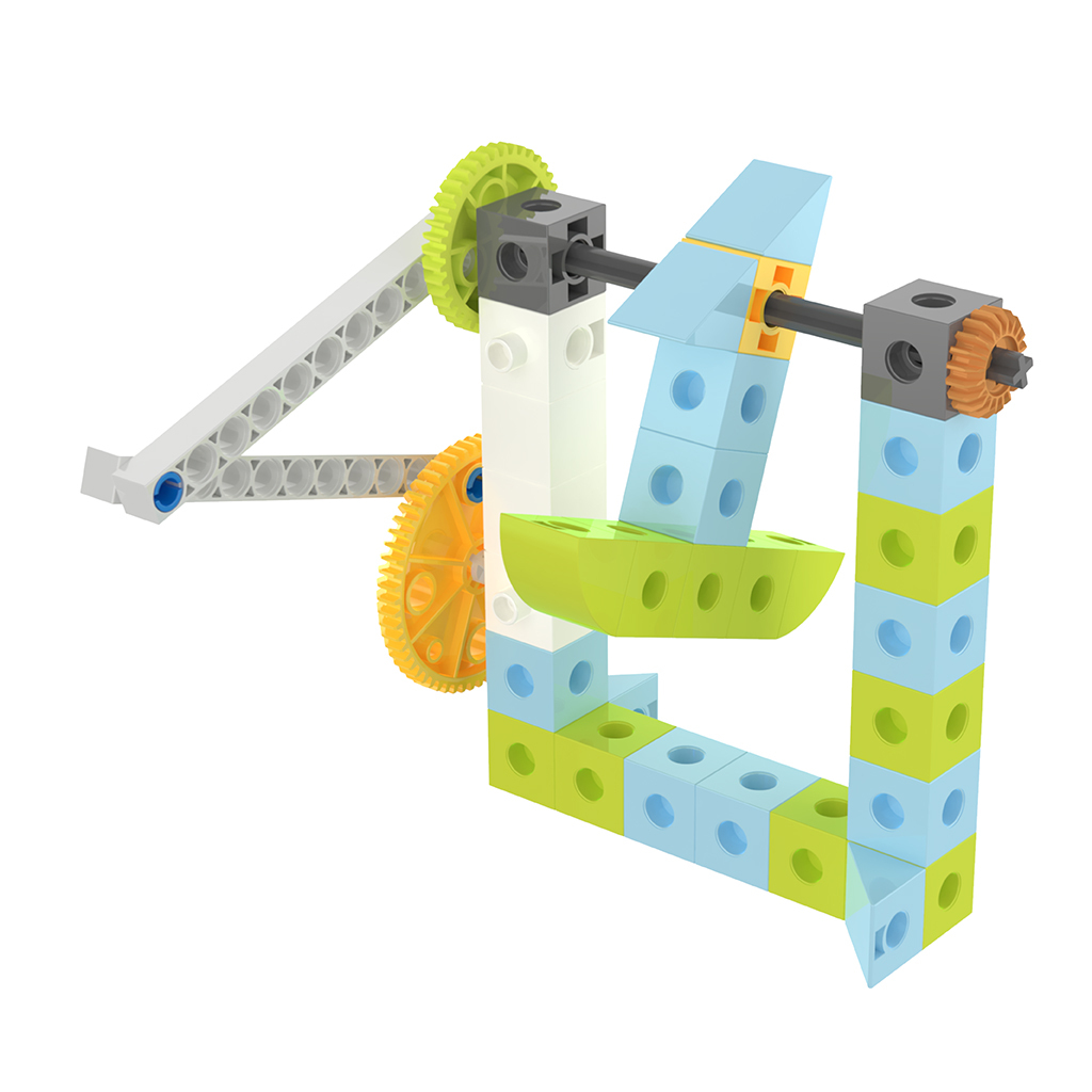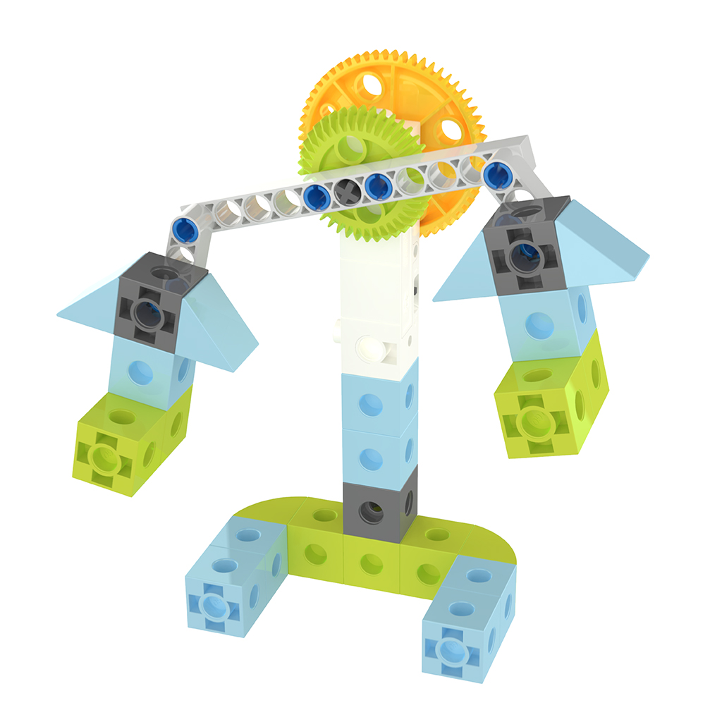 В комплект входит компактный электромотор, который легко соединяется с кубиками Gigo. Моторчик питается от одной батарейки AAA (не входит в комплект) и позволяет ребёнку экспериментировать с различными видами движения: вращением, покачиванием, подъёмом и спуском. Благодаря этому дети могут самостоятельно исследовать, как работают разные механизмы и от чего зависит движение каждой конструкции.