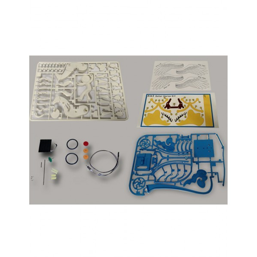 Набор, позволяющий собрать 3 различных моделей, работающих от солнечной батареи. Все модели движутся – достаточно их вынести на яркое солнце или поместить под настольную лампу. В подробной инструкции, входящей в набор, вы найдете не только пошаговое описание порядка сборки, но и интересные сведения о солнечных батареях.