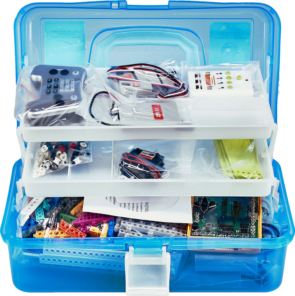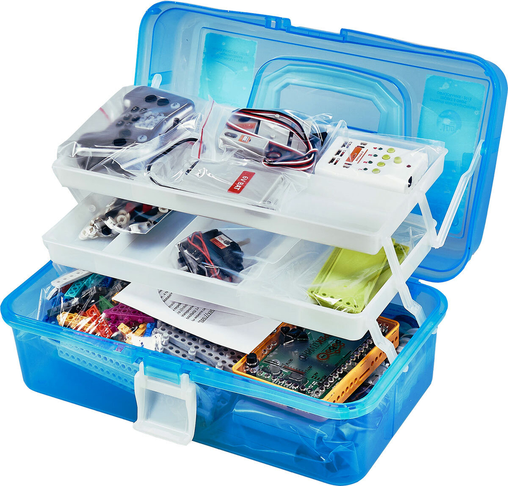 • 2 материнские платы (контроллера) - 1 прошитая с 4 алгоритмами и с возможностью дистанционного управления, 1 программируемая (визуализированная среда РОБОТРЕК)