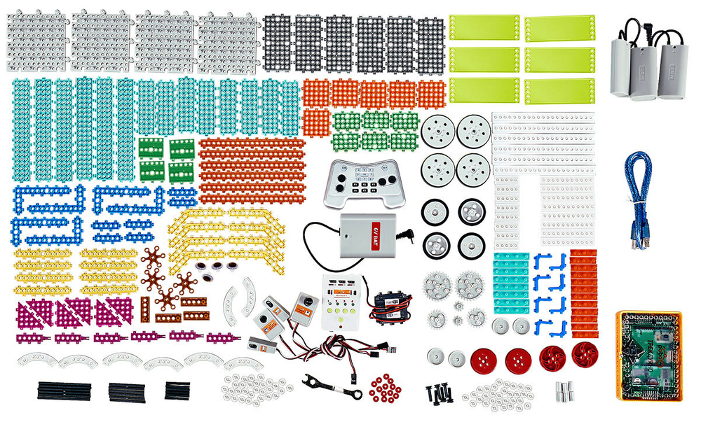 • набор различных датчиков - 2 инфракрасных датчика, 1 датчик приема ДУ, 1 датчик звука