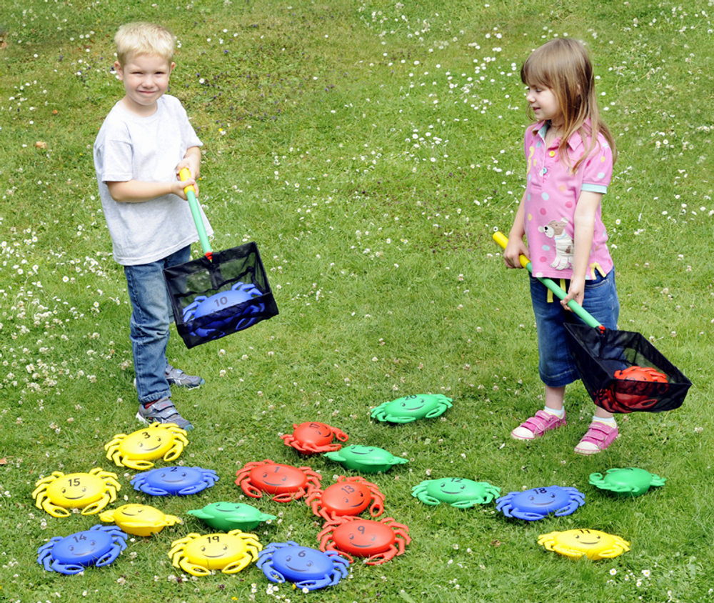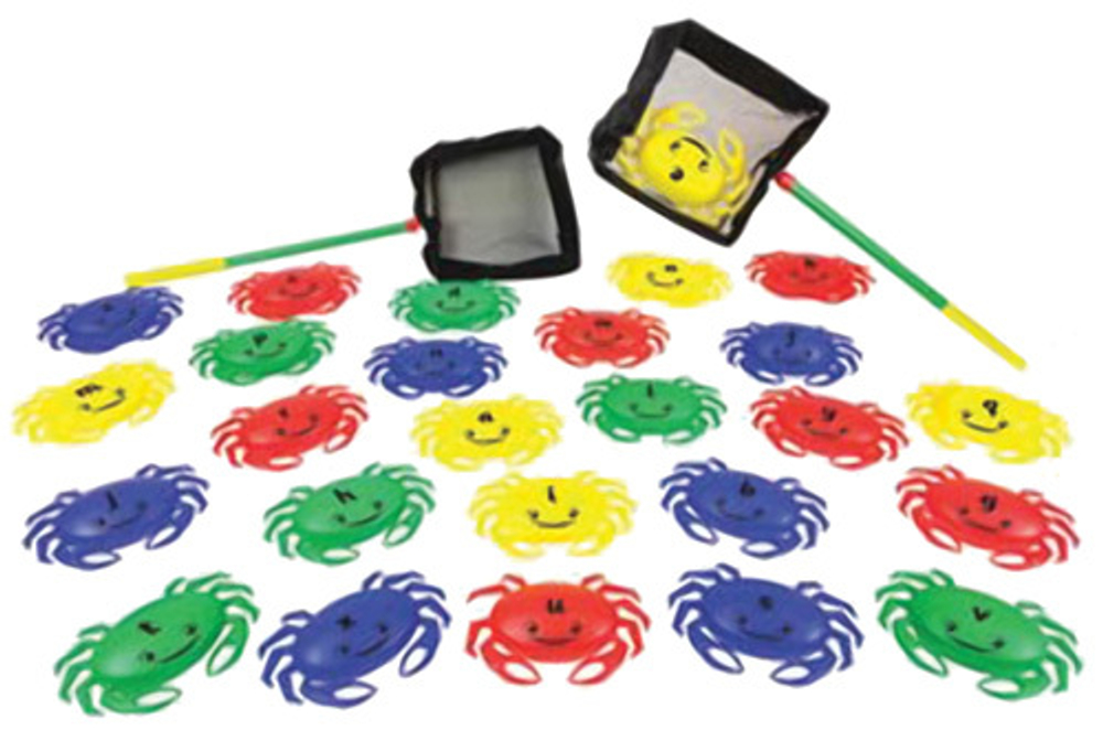 Комплектация: 20 крабов 4-х разных цветов с нумерацией от 1 до 20 и 2 больших сачка для ловли крабов.