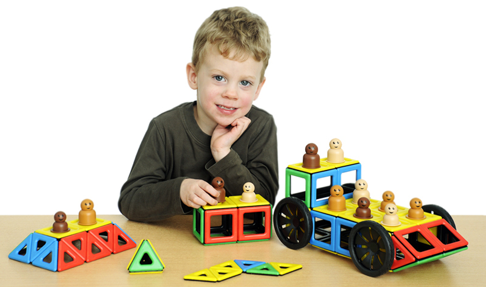 Это современный инновационный продукт, с помощью которого дети смогут одновременно познавать мир фигур, пространства, законы магнетизма и робототехники.