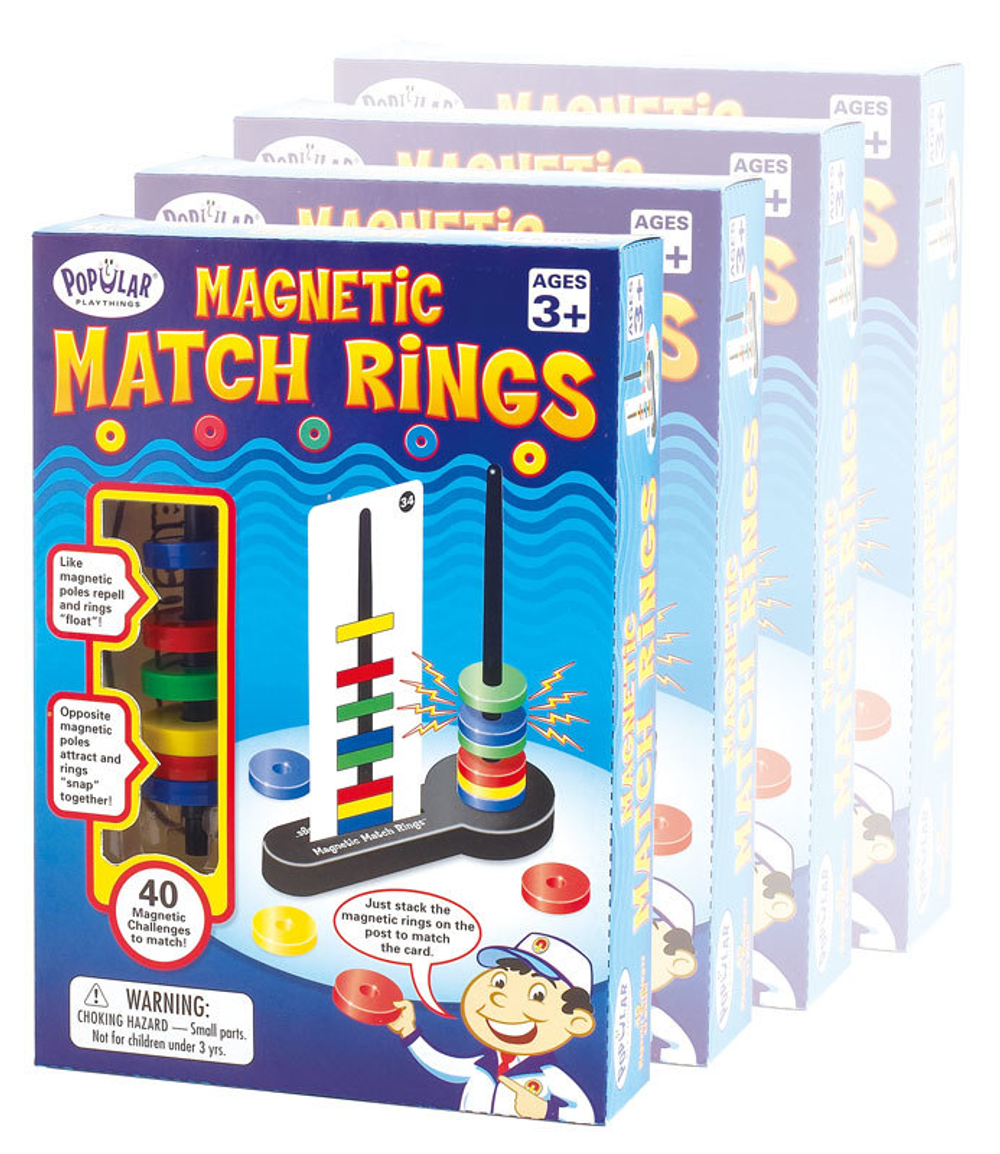 Занимательная головоломка "Магнитные кольца" - это интересный способ узнать о магнетизме. Каждое кольцо является магнитным, одна сторона положительная, а другая отрицательная. Когда вы складываете кольца, они либо притягивают следующее кольцо (защелкиваются вместе), либо отталкивают следующее кольцо, создавая пространство между кольцами.