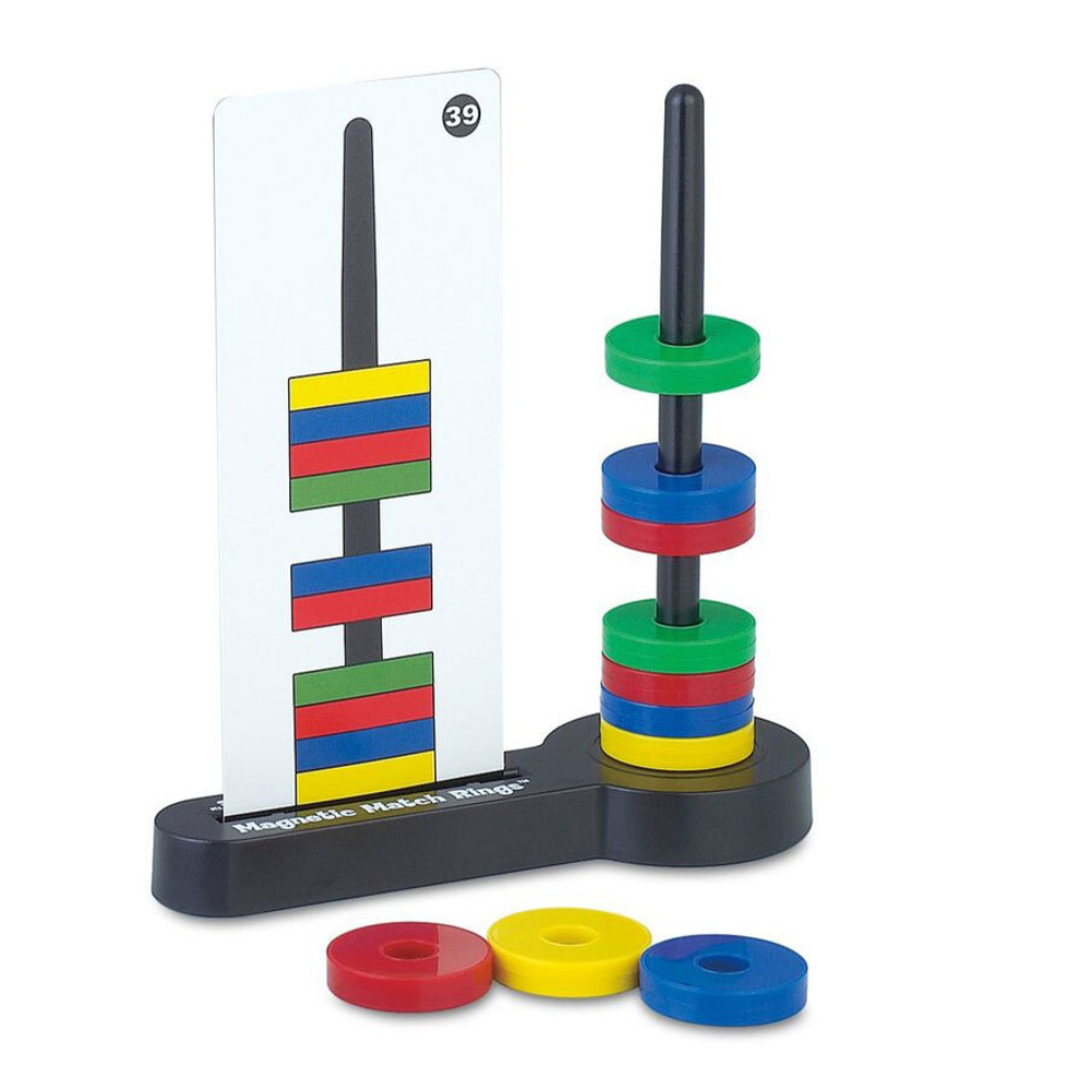 Занимательная головоломка "Магнитные кольца" - это интересный способ узнать о магнетизме. Каждое кольцо является магнитным, одна сторона положительная, а другая отрицательная. Когда вы складываете кольца, они либо притягивают следующее кольцо (защелкиваются вместе), либо отталкивают следующее кольцо, создавая пространство между кольцами.