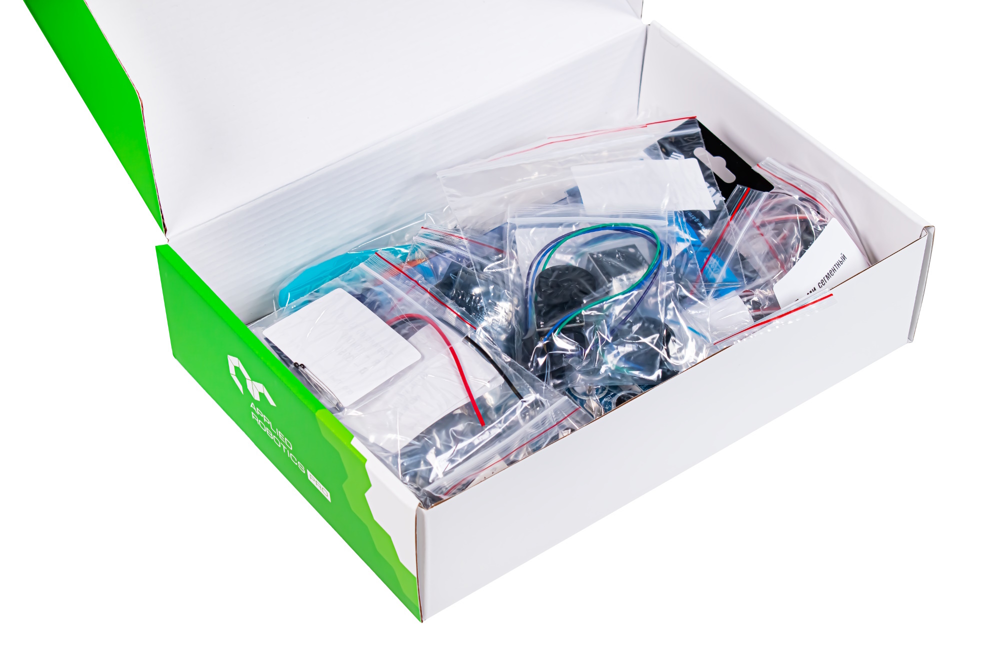 - В состав набора входит пособие по изучению основ электроники и схемотехники, решений в сфере "Интернет вещей", разработки и прототипированию моделей роботов.