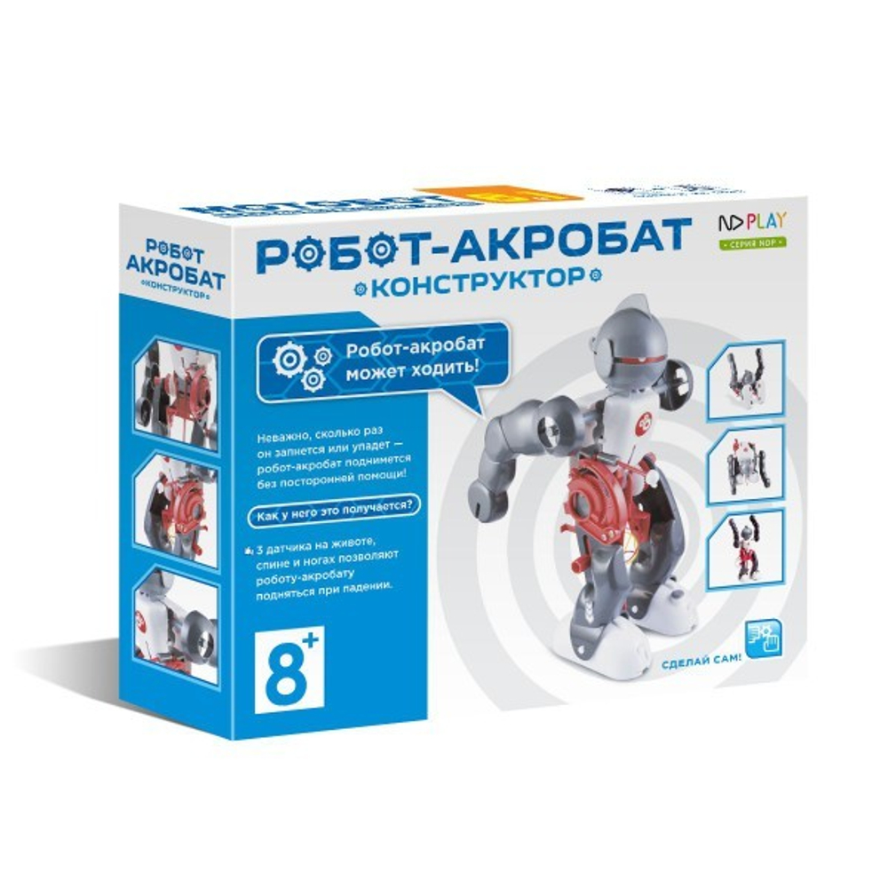 Робот-акробат умеет делать столько всего интересного: сидеть, ходить и даже подниматься после падения! Ребенку нужно лишь разобраться в механизме робота и заодно узнать основы роботостроения –шестеренки, цепи, ремни, нюансы крутящего момента, сенсоры. Правильное следование инструкции поможет добиться от робота удивительных телодвижений.
