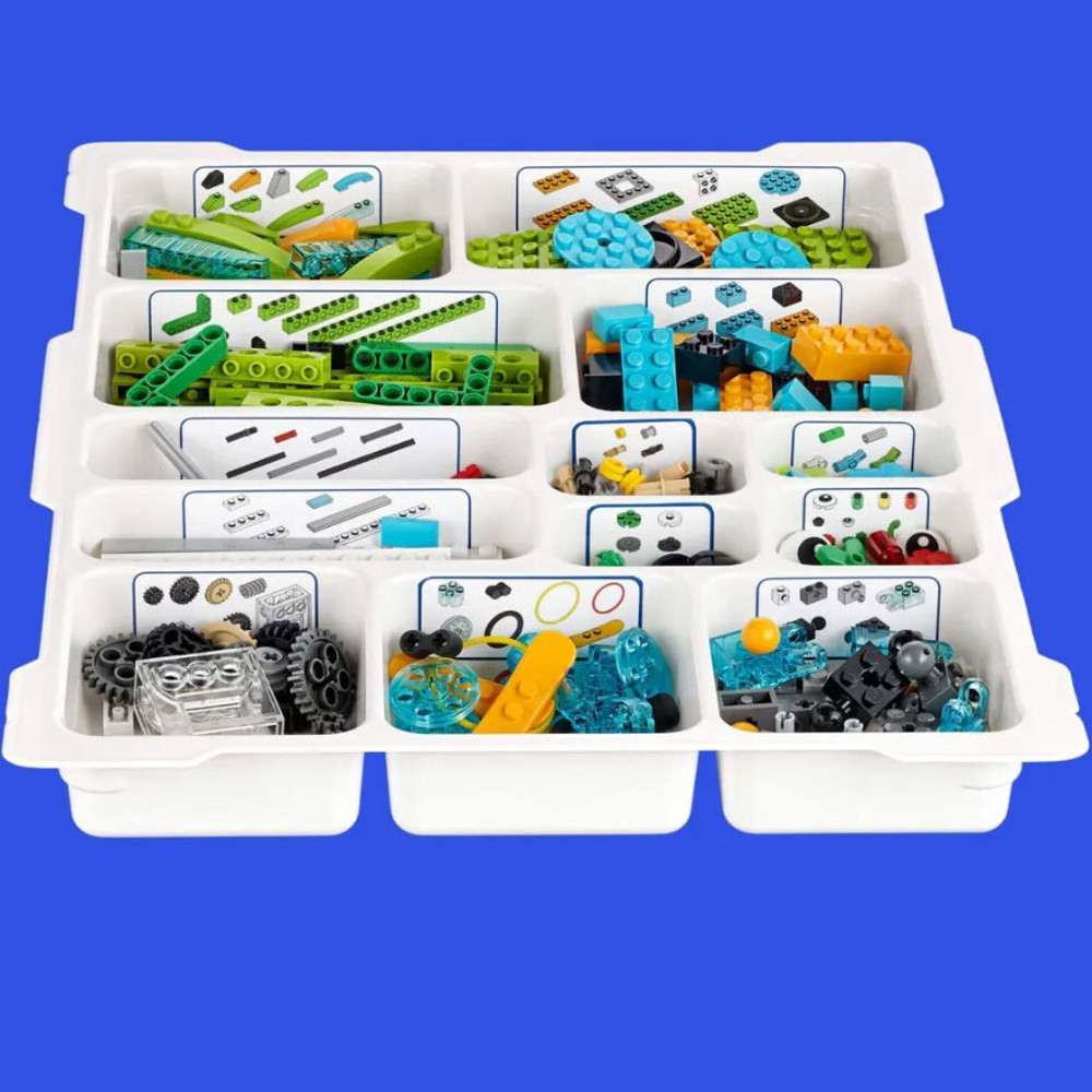 Набор включает в себя 284 детали и 4 электрокомпонента, что позволяет создавать разнообразные модели и программировать их на WEDO или Scratch.
