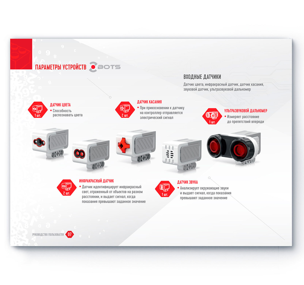 В наборе представлен широкий спектр датчиков и управляемых устройств.