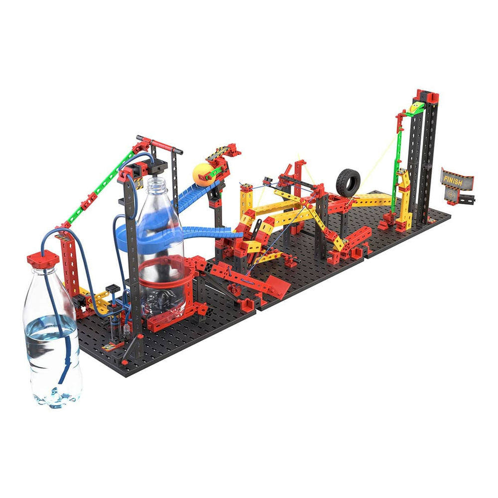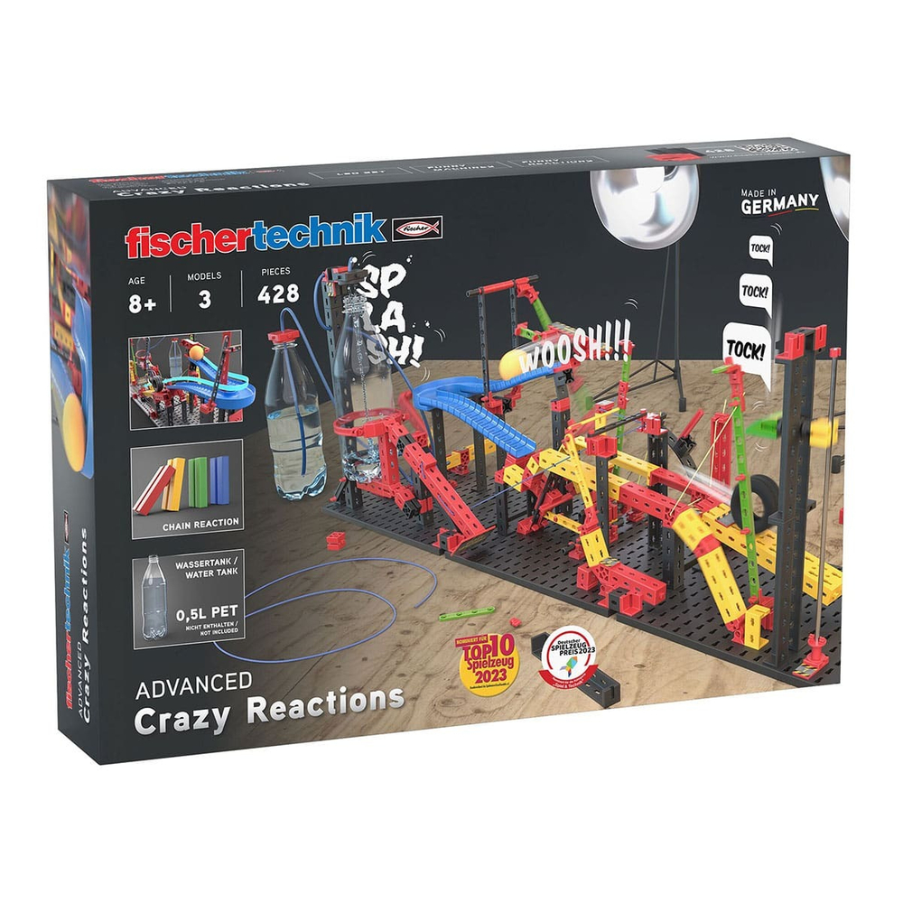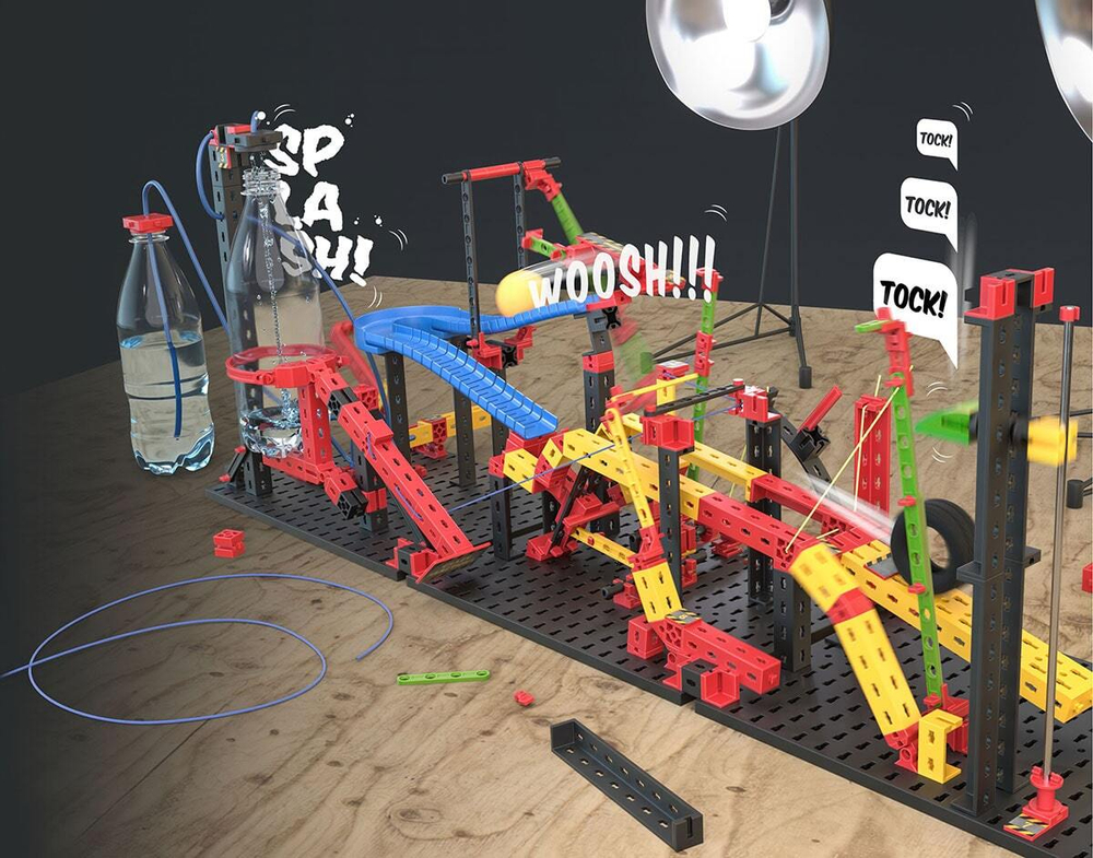 С помощью конструктора "Сумасшедшие реакции" вы сможете построить три разные цепные реакции с захватывающими неожиданными эффектами. Подайте стартовый сигнал и в игровой форме узнайте о функциях троса, рычага и шестерни.