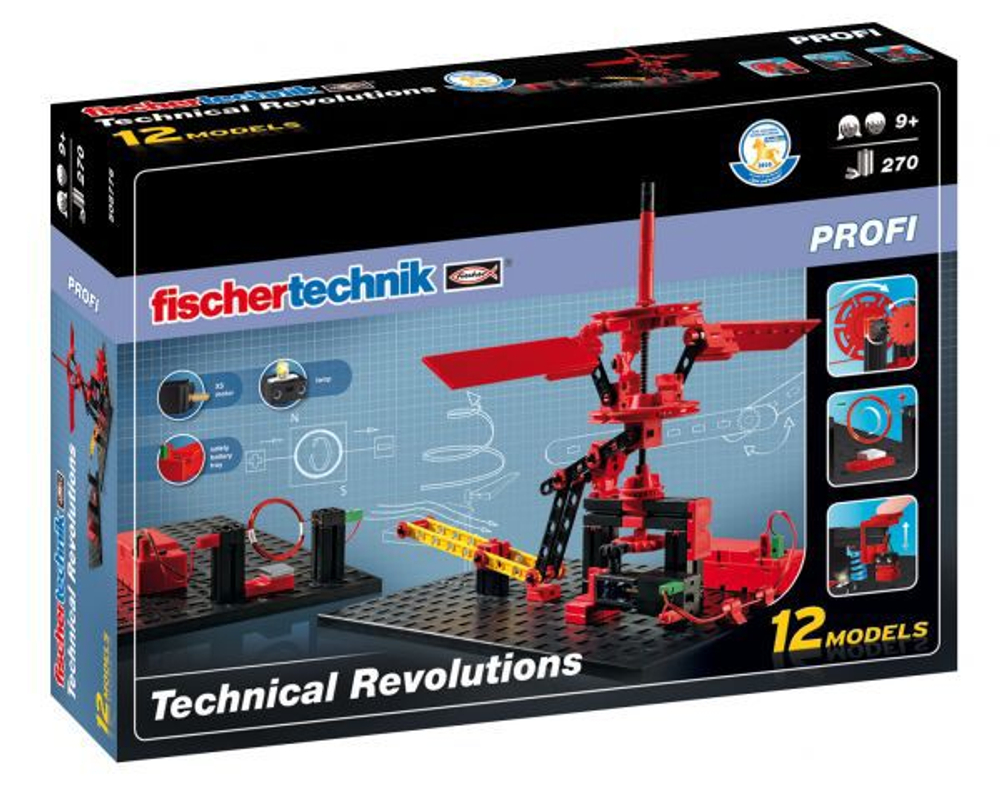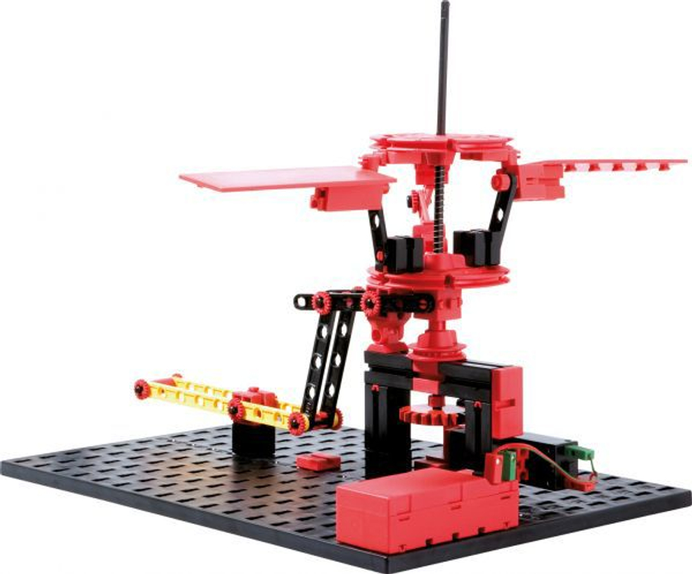 Из конструктора fischertechnik Техническая революция можно собрать действующие модели аппарата Морзе, электромотора, электрогенератора, лифта, карданного вала, вертолетного винта, центробежного регулятора Уатта, гигрометра.