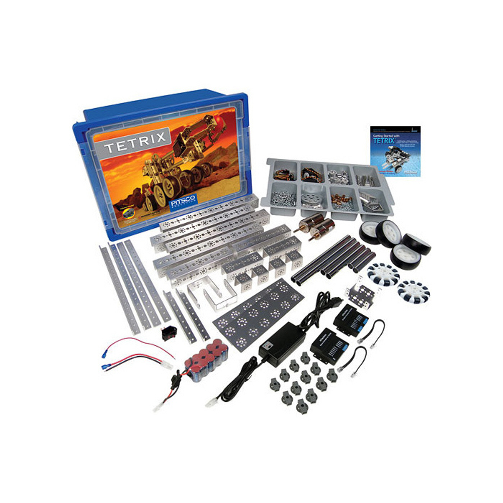 Базовый набор TETRIX содержит более 650 наиболее используемых элементов: моторы, колеса, аккумуляторная батарея, шестерни, муфты, пластины и многое другое. Элементы конструктора выполнены из высокопрочного алюминия, который используется в самолетостроении. Данный набор совместим с LEGO Mindstorms EV3 и NXT: робот, собранный из TETRIX, может использовать датчики и контроллер EV3 или NXT, а также всю элементную базу: балки, оси, шестерни, пластины и прочее. Робот, собранный на базе конструктора TETRIX, может быть как автономным, так и с дистанционным управлением.