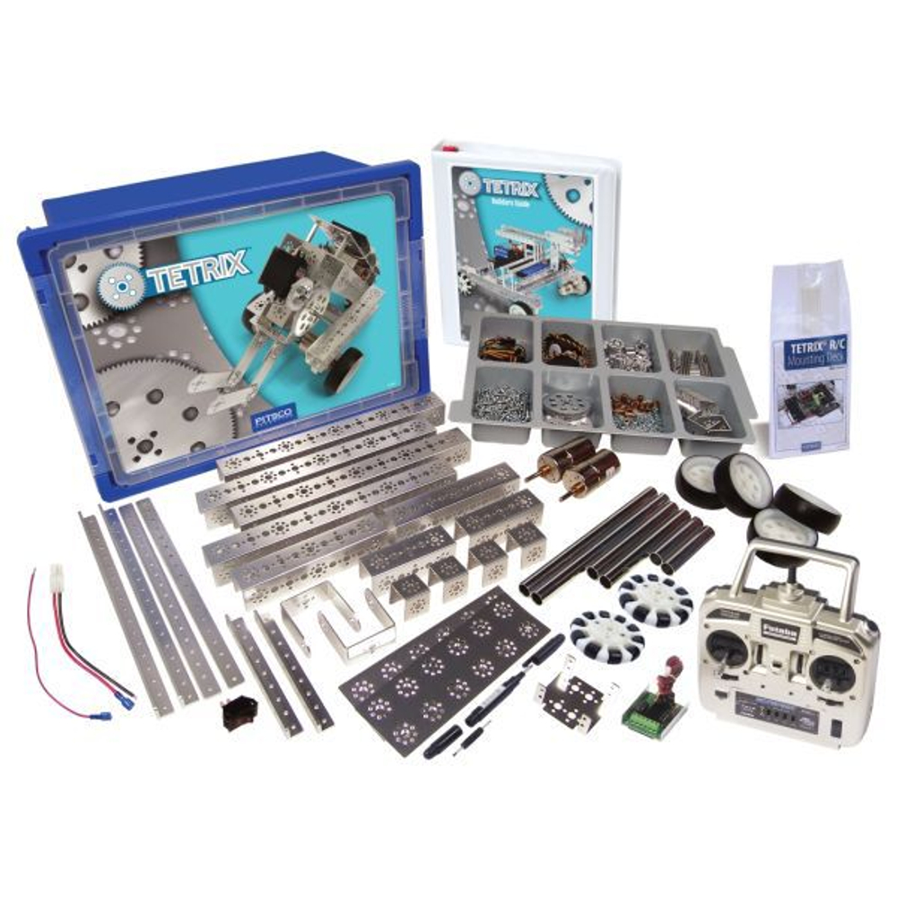 Стартовый набор состоит из 554 элементов, включает в себя самое полное руководство TETRIX® Builders Guide на 190 страницах - пособие для учителя с несколькими вариантами сборки различных моделей - инструкции, техника безопасности, ресурсы, задания и многое другое (в печатном виде и на CD). В этот набор входит TETRIX® Базовый набор (39143), TETRIX ® DC регулятор скорости (34244) с держателем батареи, и четырехканальный пульт дистанционного управления контроллером.