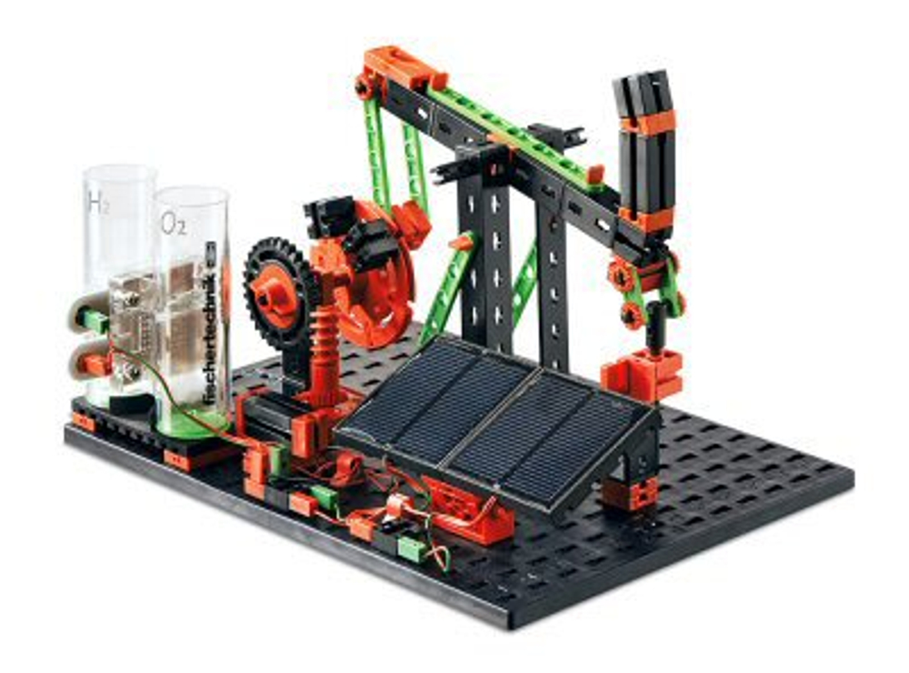 Внутри набора fischertechnik Топливный элемент вы найдете «водородно-кислородный» топливный элемент с протонообменной мембраной и дополнительную солнечную батарею.