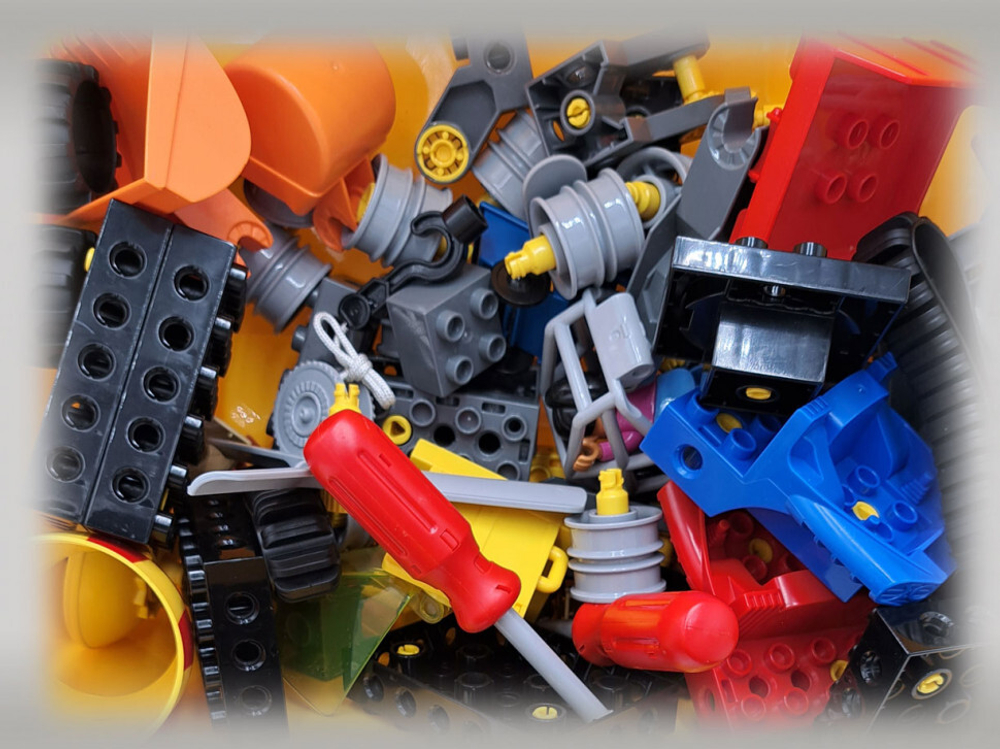 Собирайте вместе с малышом первые машины: экскаватор, погрузчик, подъёмный кран, бетономешалку.
