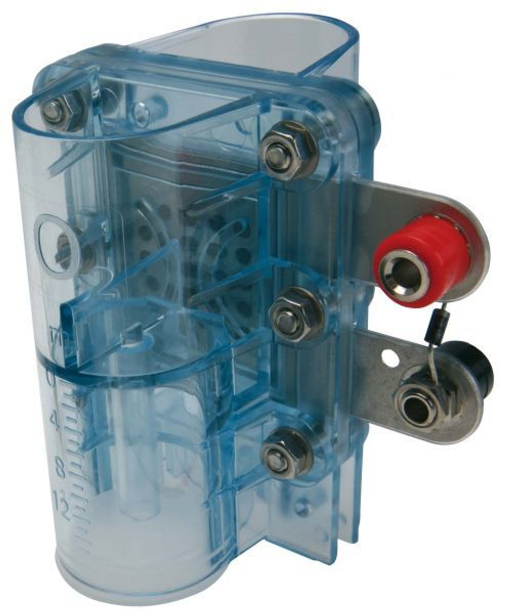 Водородный топливный элемент – это устройство, которое превращает химическую энергию дистиллированной воды в электричество. Внутри набора fischertechnik Топливный элемент вы найдете «водородно-кислородный» топливный элемент с протонообменной мембраной и дополнительную солнечную батарею.