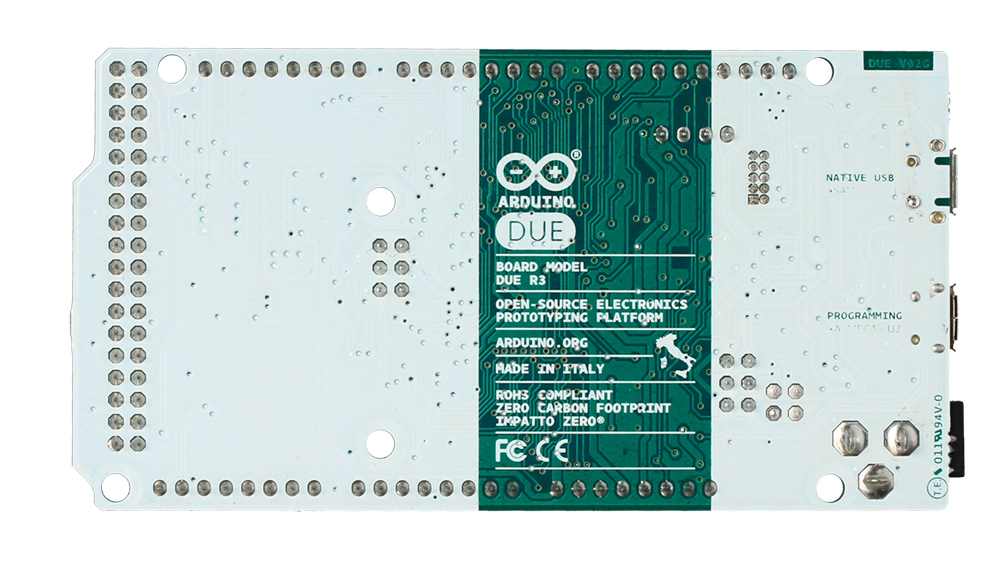- Один USB-порт (programming) используется для прошивки Arduino Due. Он подключён к чипу ATmega16U2 на плате, который является мостом между USB и аппаратным портом SAM3X, используемым для программирования процессора и связи с компьютером.