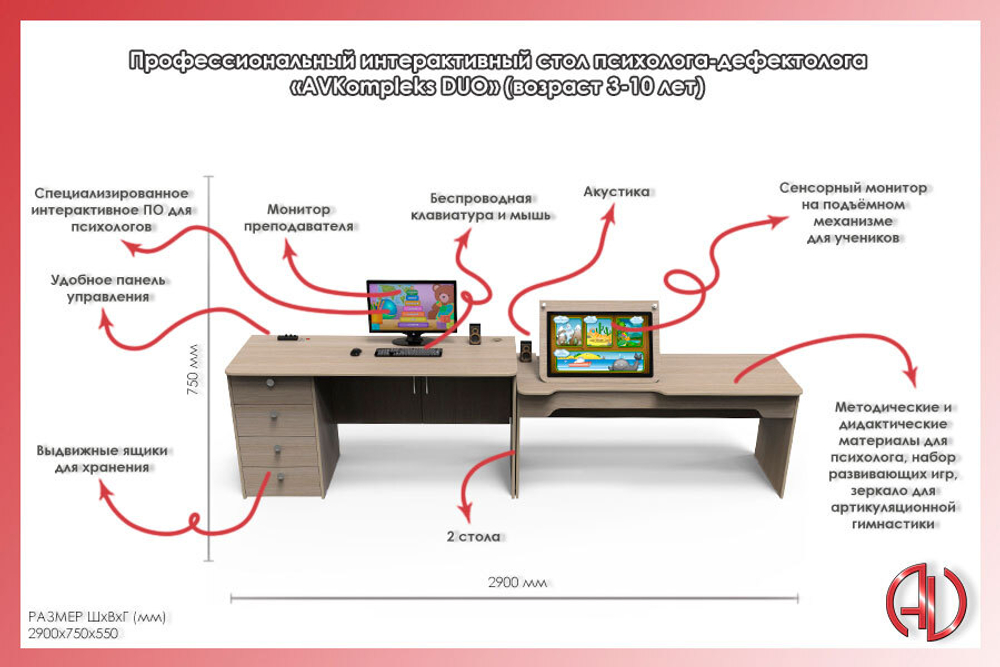 | Диагональ монитора ученика | 25", формат 16:9 |