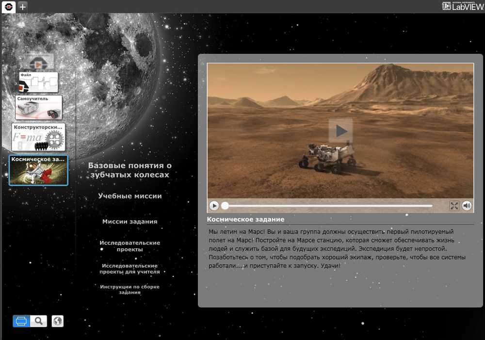 Дополнительные задания «Космические проекты» - это программный контент, который включает в себя семь основных заданий, девять обучающих задач и четыре проекта по исследованию основ динамики, механики, проектированию и конструированию. Все задания объединены общей увлекательной тематикой – освоение Марса.