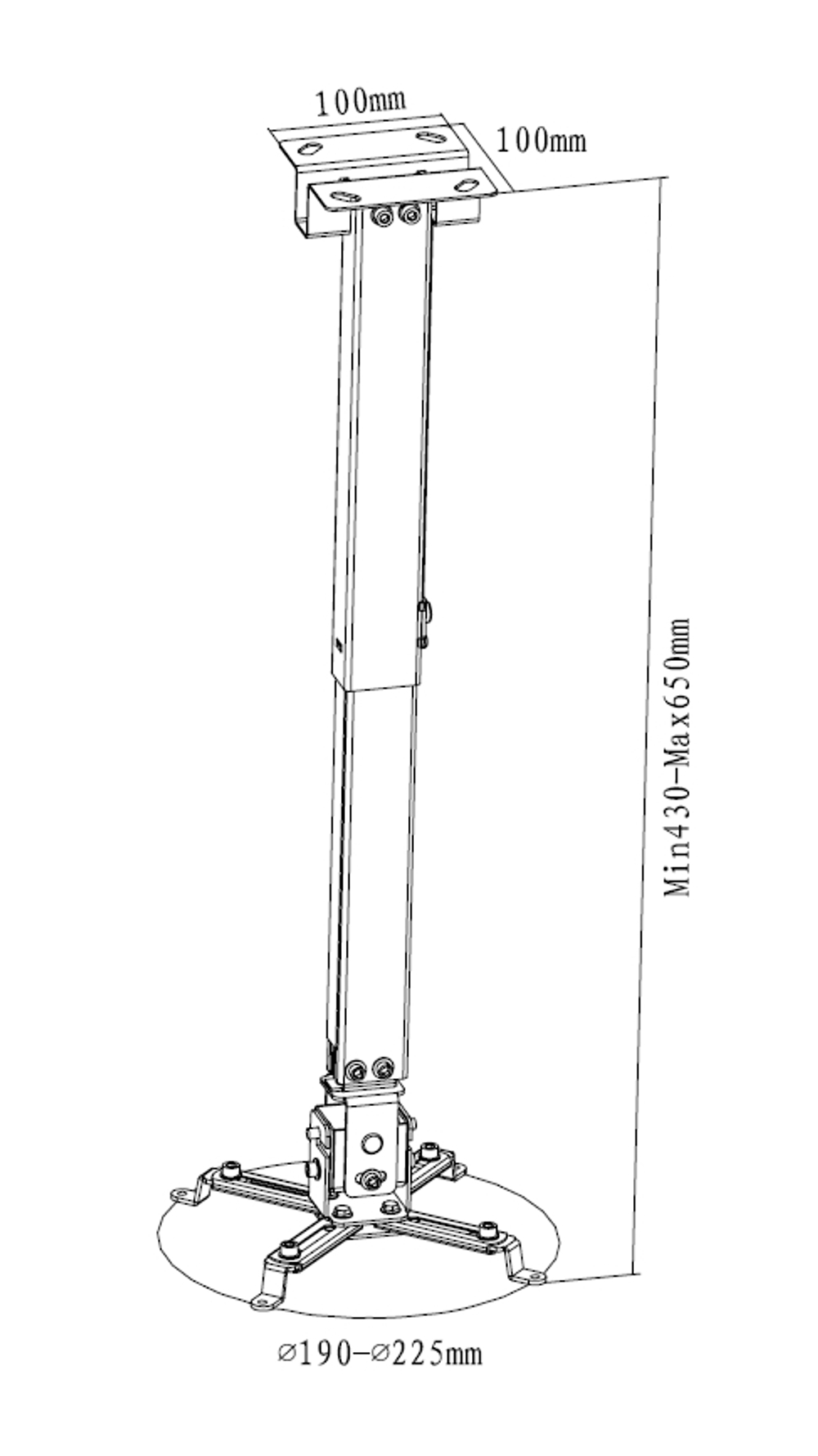 Универсальный потолочный кронштейн с независимыми регулировками и возможностью точного позиционирования положения проектора. Регулировка проектора +/- 15 градусов по вертикали, +/- 4 градуса в горизонтали. Максимальный вес проектора 20 кг. Цвет – серебро.