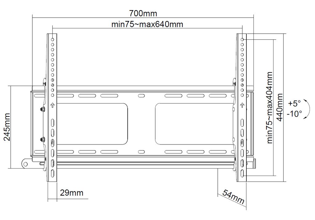 Простой в использовании и установке сверхпрочный настенный наклонный кронштейн Exell EXi-H1264-AT подходит для большинства панелей с диагональю экрана 37–80 дюймов и весом до 107 кг. Регулируемая конструкция обеспечивает легкое изменение угла обзора -10°/+5°, что гарантирует идеальное расположение панели после установки, а система защиты от краж дополняет функциональность кронштейна. Exell EXi-H1264-AT – стандарт качества, надежности и безопасности.