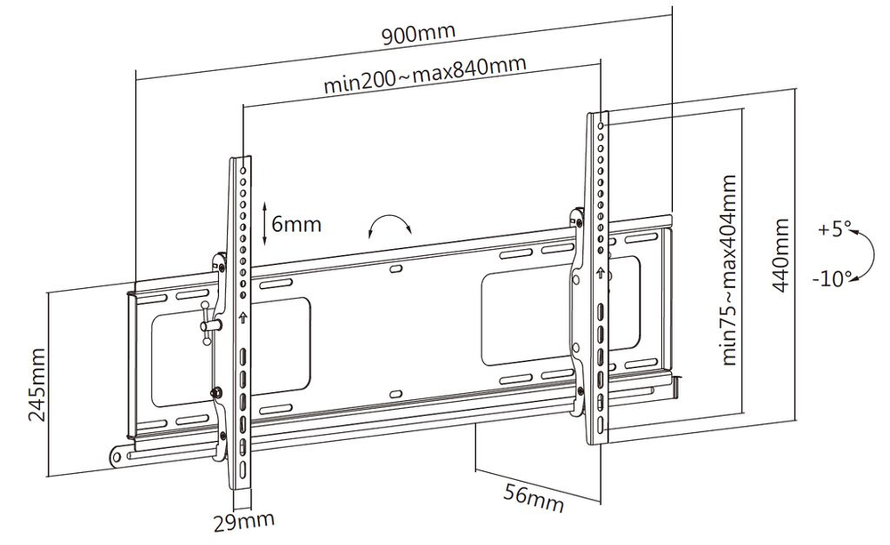 Простой в использовании и установке сверхпрочный настенный наклонный кронштейн Exell EXi-H1284-AT подходит для большинства панелей с диагональю экрана 43–90 дюймов и весом до 107 кг. Регулируемая конструкция обеспечивает легкое изменение угла обзора -10°/+5° без использования инструментов, что гарантирует идеальное расположение панели после установки, а система защиты от краж дополняет функциональность кронштейна. Exell EXi-H1284-AT – стандарт качества, надежности и безопасности.