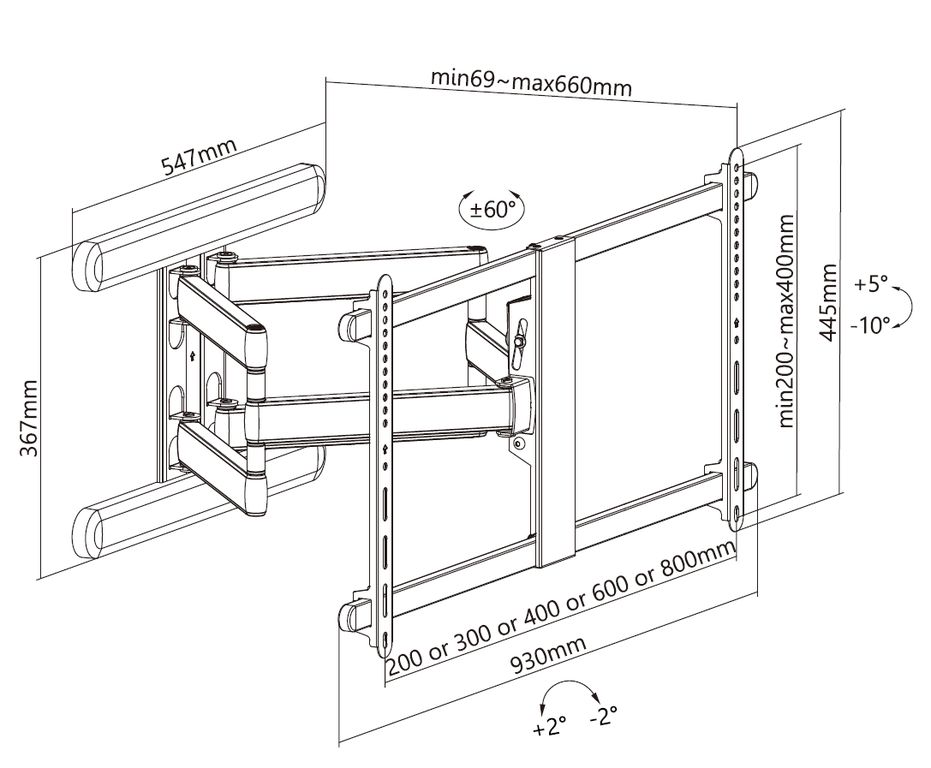 Премиальный поворотно-выносной кронштейн Exell EXi-X9086 для телевизоров с диагональю 49–90 дюймов использует инновационные материалы и продвинутые технические решения. Благодаря этому он не только выдерживает вес до 90 кг, что гарантирует безопасность, но и обеспечивает полный диапазон движений, включая выдвижение 69–690 мм, наклон -10°/+5°, поворот ±60°, коррекцию уровня ±2°. Выдвигать или складывать кронштейн еще никогда не было так просто – улучшенная конструкция со встроенными медными втулками двигается максимально плавно. Два многофункциональных кабельных зажима элегантно скрывают, защищают и поддерживают кабели. EXi-X9086 – уникальный дизайн и высокое качество для самых искушенных.