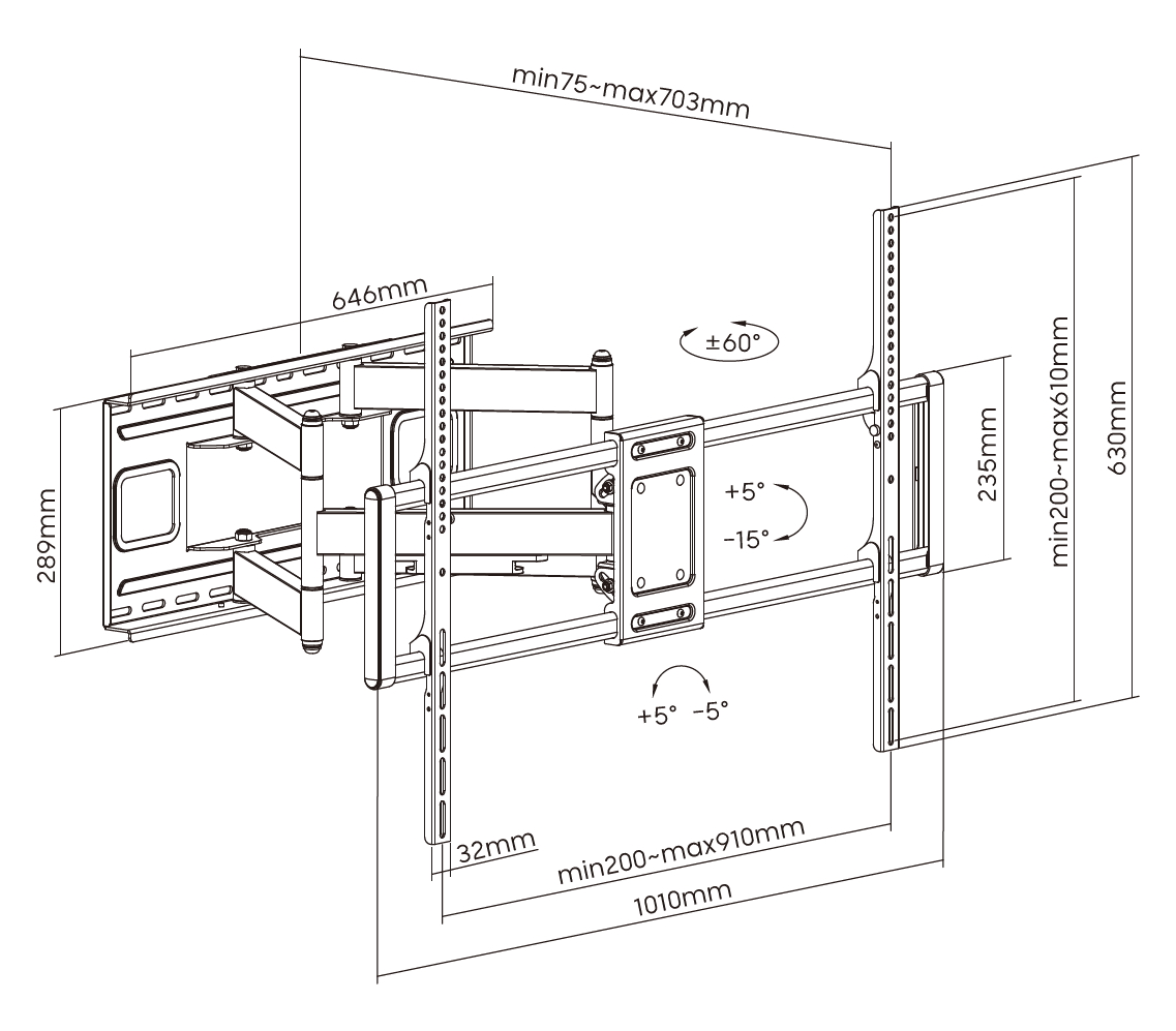 Расстояние от стены (мм) 75-703