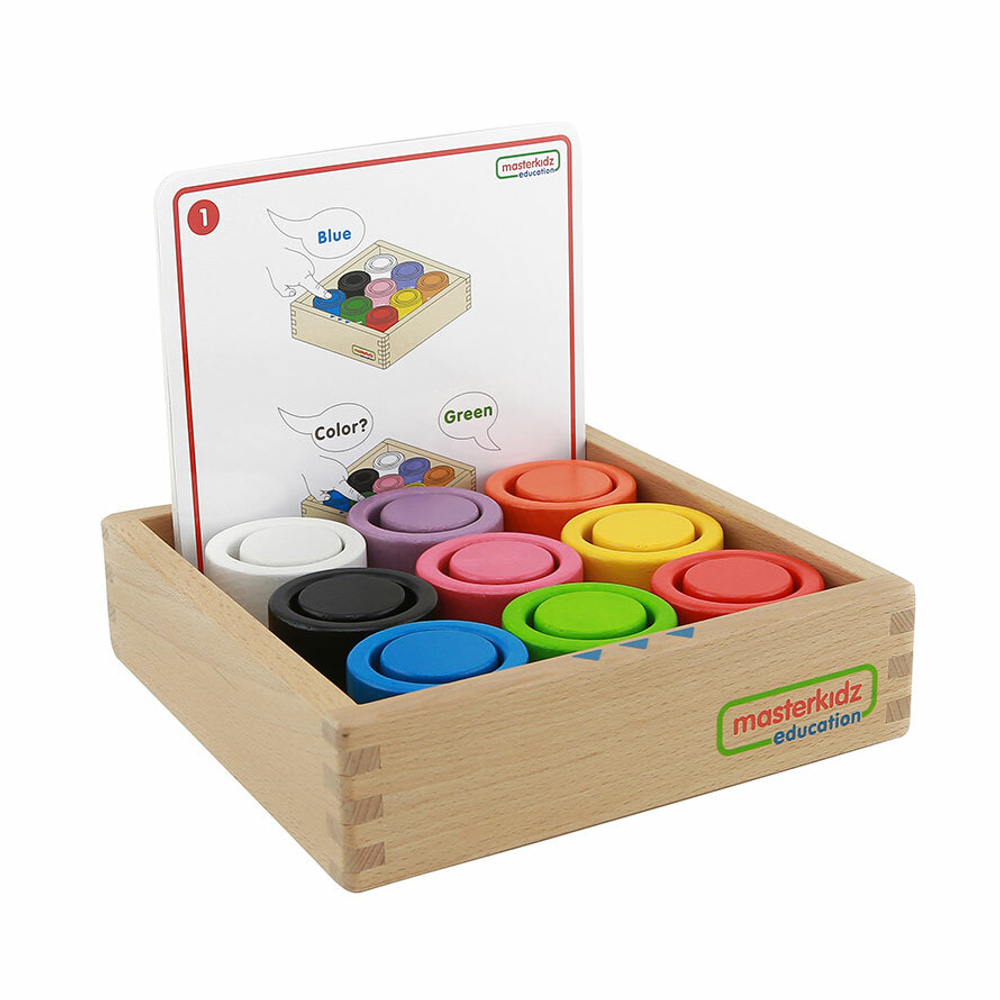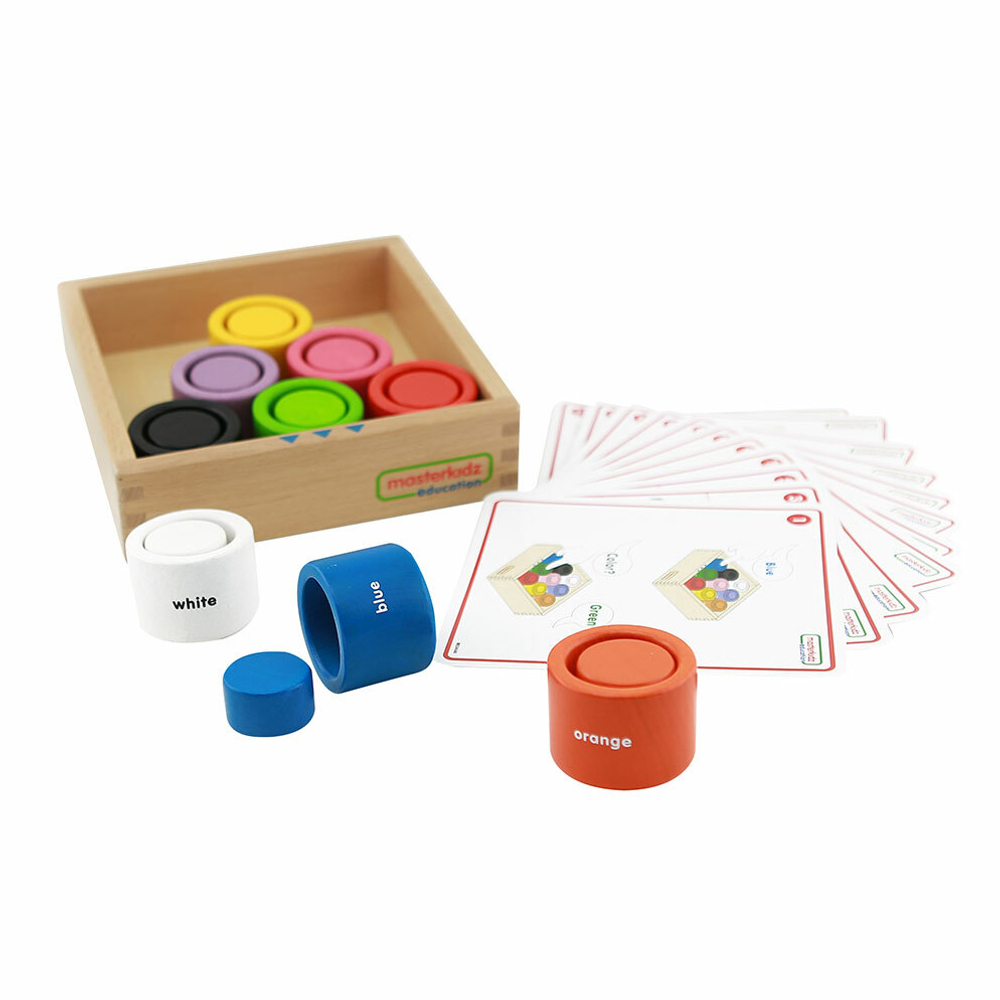 Набор из 9 деревянных круглых блоков и чашек 9 разных цветов. Помогает детям развивать распознавание цветов и мелкую моторику, сопоставляя блок с чашкой нужного цвета.
