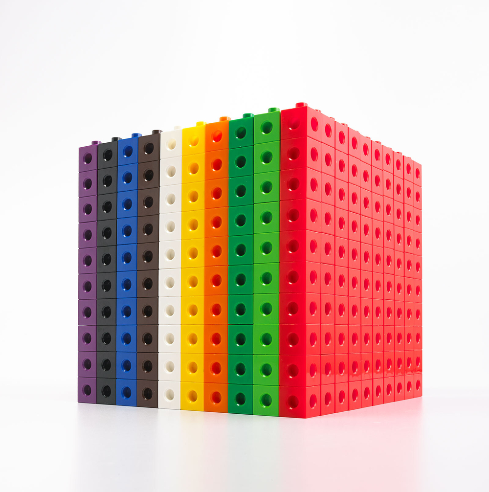 Набор состоит из 1000 кубиков (2 х 2 х 2 см), соединяющихся между собой, выполненных в 10 различных цветах.