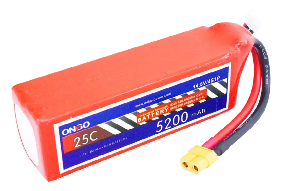Модель: ONBO Емкость: 5200 мАч Напряжение: 14.8 В Тип: LiPo Способ подключения: XT-60 Масса: 496 г Количество циклов перезарядки: 150 Диапазон температур зарядки: От 0°С до +45°С