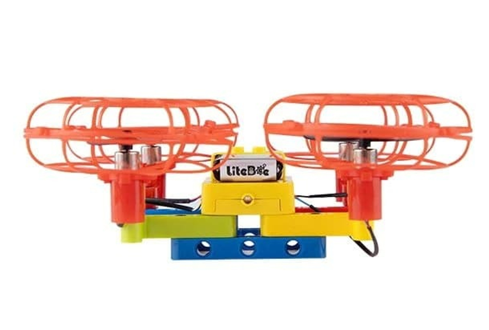 Квадрокоптер Litebee Brix – это детский конструктор для сборки дрона. И хотя все детали очень похожи на детали от Лего, но дрон самый настоящий, который может находиться в воздухе до 7 минут и управляться с пульта, а также совершать разные трюки. Например, он может делать сальто на 360°, взлетать, если его подбросить, а потом снова садиться на ладонь. Благодаря своей конструкции, дрон абсолютно безопасен для окружающих – вокруг винтов защита, а также никогда не ломается – при сильном падении он просто рассыпается на детали, из которых его опять можно легко собрать! Все детали этого комплекта и самого дрона совместимы с конструктором Лего, и можно реализовать множество других интересных проектов.