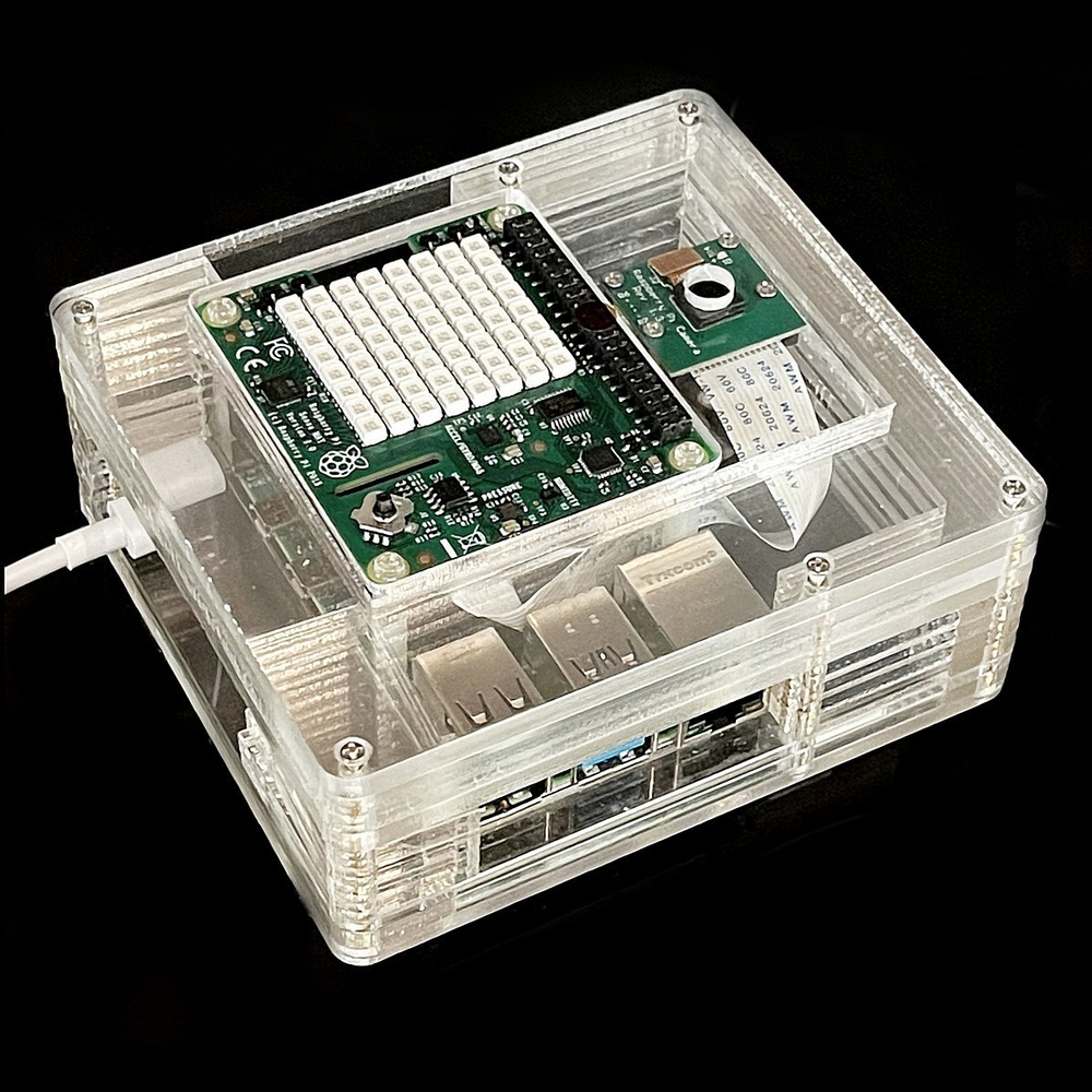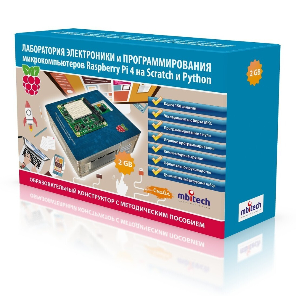 Образовательный конструктор «ЛАБОРАТОРИЯ ЭЛЕКТРОНИКИ И ПРОГРАММИРОВАНИЯ микрокомпьютеров Raspberry Pi 4 на Scratch и Python» выполнен в виде мини-стенда, основу которого составляет рабочая пара из микрокомпьютера Raspberry Pi 4 и уникальной платы расширения Sense HAT (Hardware Attached on Top).