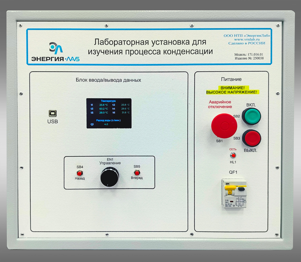 Лабораторная установка «Изучение процессов конденсации» предназначен для изучение процесса конденсации на одиночных горизонтальных трубах (гладкой и оребренной).