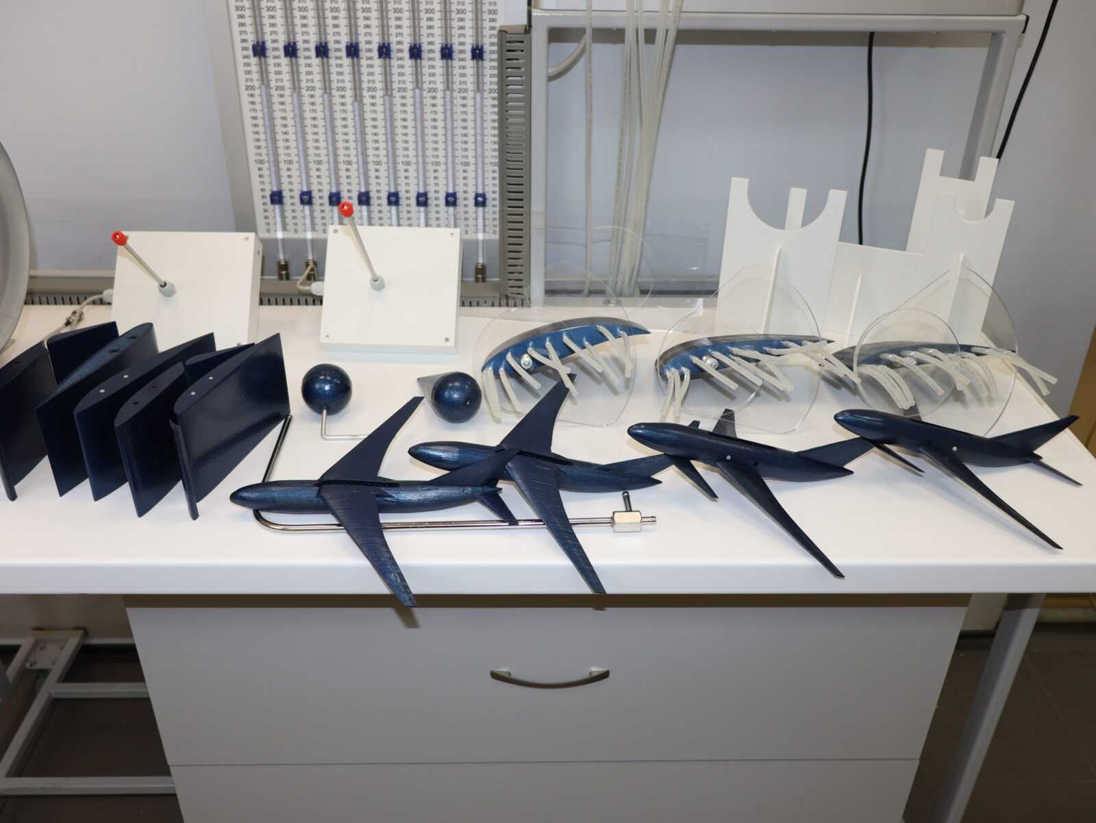 - Экспериментальные продувки пластиковых моделей самолетов разных аэродинамических схем