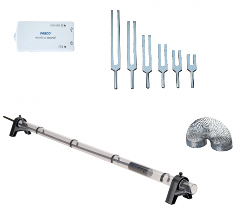 Учащиеся могут использовать пружину с большим диаметром удвоенной протяжённости для создания формы волны, а затем использовать программное обеспечение PASCO, чтобы легко измерить звуковые волны для дальнейшего анализа.