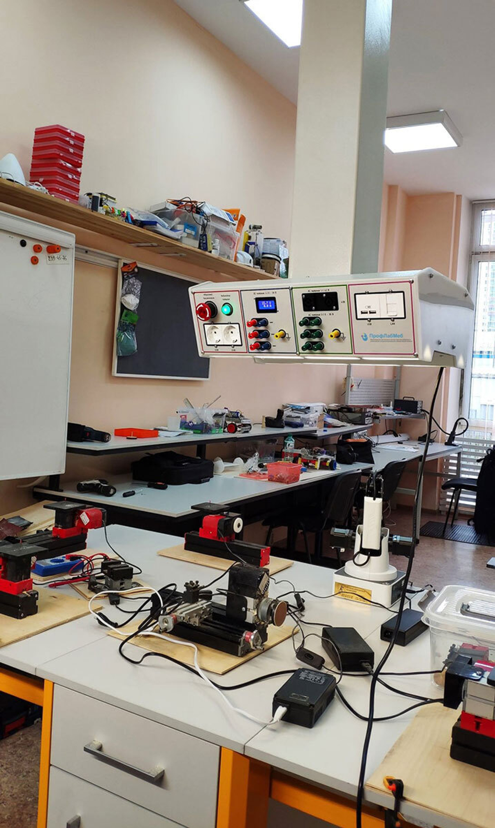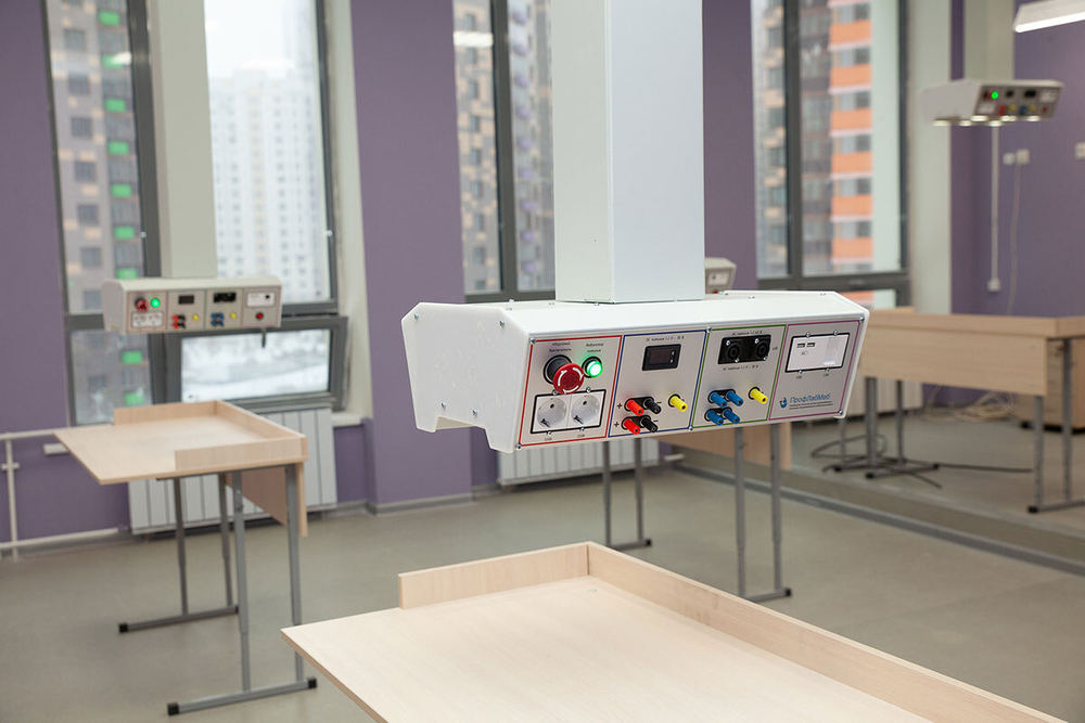 Оборудование объединено в единую информационную сеть и интегрировано в единую информационную систему. Система обеспечивает безопасное размещение электрических розеток за пределами доступа учеников во время отсутствия необходимости работы с электроприборами. Все компоненты управления находятся под контролем преподавателя полностью, исключая несанкционированный доступ со стороны учеников.