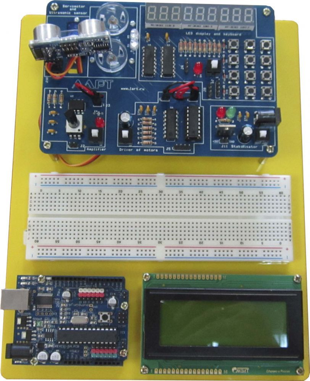 Стенд построен на базе платформы Arduino. В сочетании с другими компонентами, на стенде возможно проводить множество экспериментов в области конструирования электронных устройств, прикладного программирования, робототехники. Примеры программ для Ардуино, размещенные в открытых источниках, общедоступность данной среды дают широкие перспективы для технического творчества юных инженеров. А открытость данной среды позволяет перенимать опыт и делиться своими результатами и достижениями с коллегами со всего мира. ЛАРТ – довольно сложные, но надёжные, конструкторы отечественного производства, предназначенные для продвинутого пользователя.