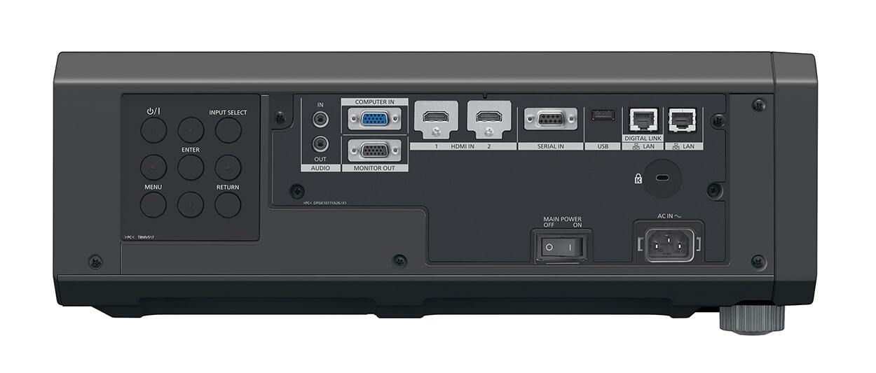 Мультимедийный проектор Panasonic PT-FRQ60B с разрешением 4kUHD (3840x2160), контрастностью 20 000:1 и световым потоком 6 200 лм.