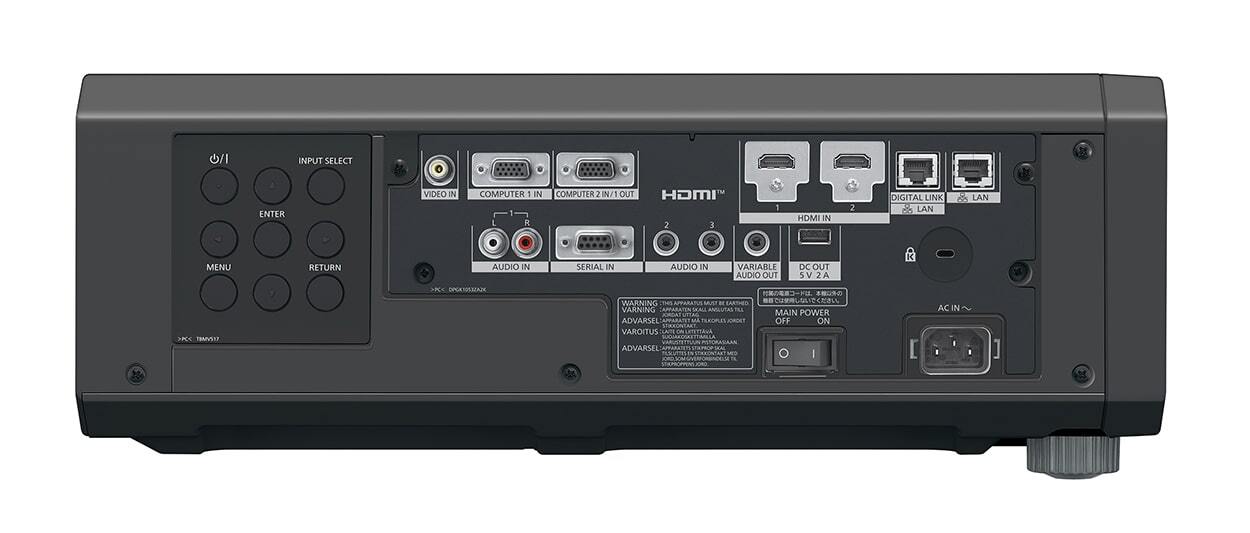 Проектор объединил в себе объектив с 2-кратным изменением фокусного расстояния, функцию сдвига объектива по вертикали и горизонтали, соединение DIGITAL LINK и HDMI-порты с поддержкой технологии CEC, позволяющие передавать сигналы с разрешением 4K/60p. Установку упрощают LAN-порт и USB-порт с выходом постоянного тока. Сама работа проектора практически бесшумная.