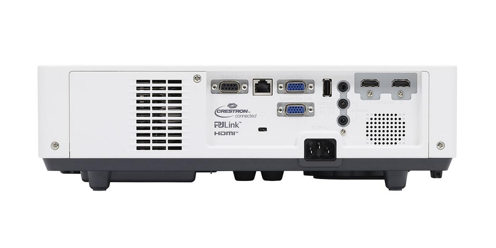 | Технологии и функциональность | 1.6-кратный зум; Коррекция трапецеидальных искажений по горизонтали и вертикали;; Программа "Multi Projector Monitoring & Control Software" для слежения и управления несколькими проекторами по локальной сети; Слежение за проектором через Web-браузер; Совместимы с PJLink, Crestron , Crestron Connected™ и AMX Device Discovery; Wi-Fi опционально |