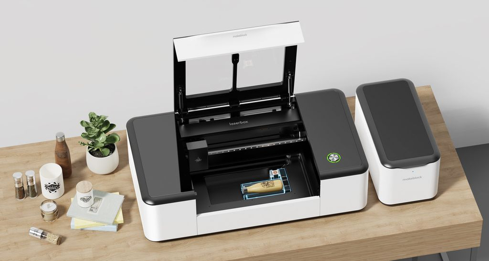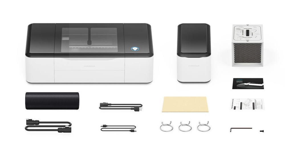 Настольный лазерный резчик/гравировщик Makeblock Laserbox Rotary с встроенной системой очистки и AI-камерой в комплекте с электронным справочником