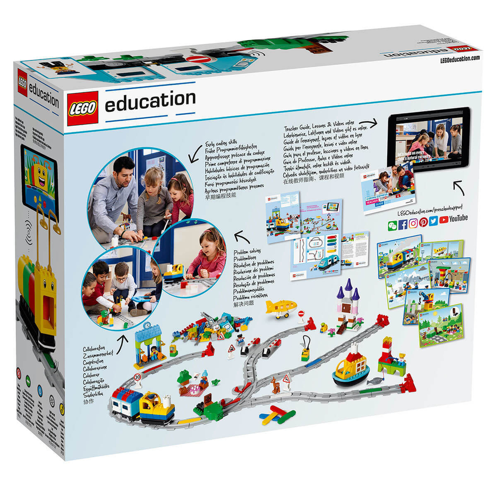 Набор LEGO Education Экспресс "Юный программист" предназначен для изучения азов программирования для детей дошкольного возраста на примере интерактивной железной дороги. Вдохновите своих учеников для изучения ранних концепций программирования, таких как циклы и условное программирование, при разработке навыков решения проблем, критического мышления, сотрудничества, а также социальных и эмоциональных навыков.
