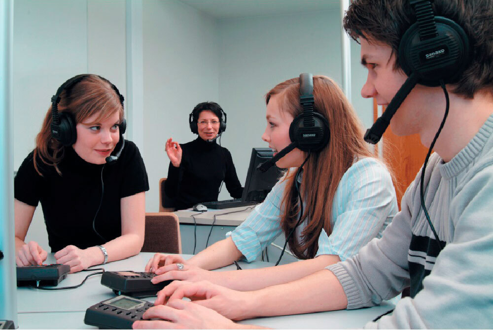 - Учебно-речевые ситуации. Учащиеся прослушивают аудио-образец и реагируют на него. Например, возможна симуляция интервью.