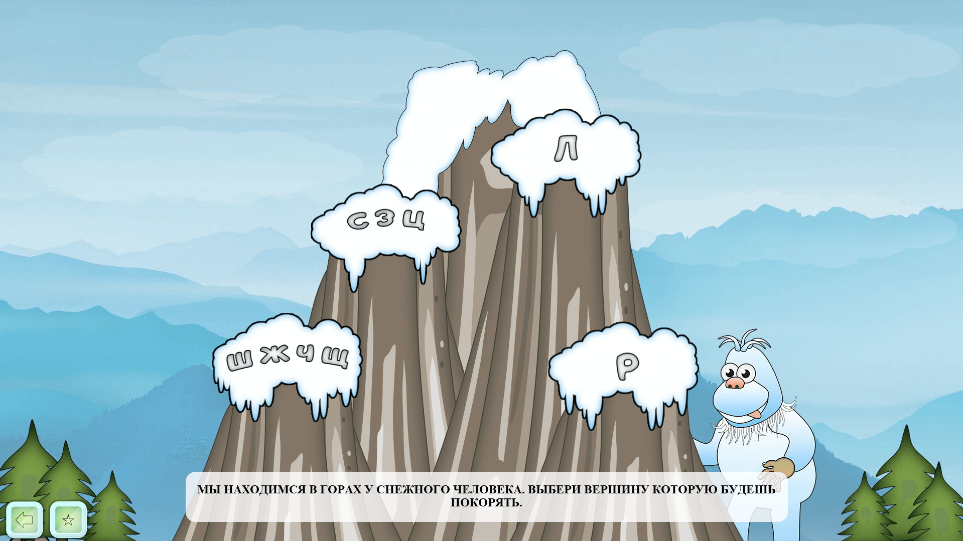 "Горы-Звукопроизношение» предназначен для работы со свистящие и шипящие звуки: «Л», «Р», «С, З, Ц», «Ш, Ж, Ч, Щ». направлены на коррекцию следующих просодических характеристик речи: длительность и сила речевого выдоха, громкость и тембр голоса, темпо-ритмичность, интонационная выразительность, четкость и разборчивость речи;