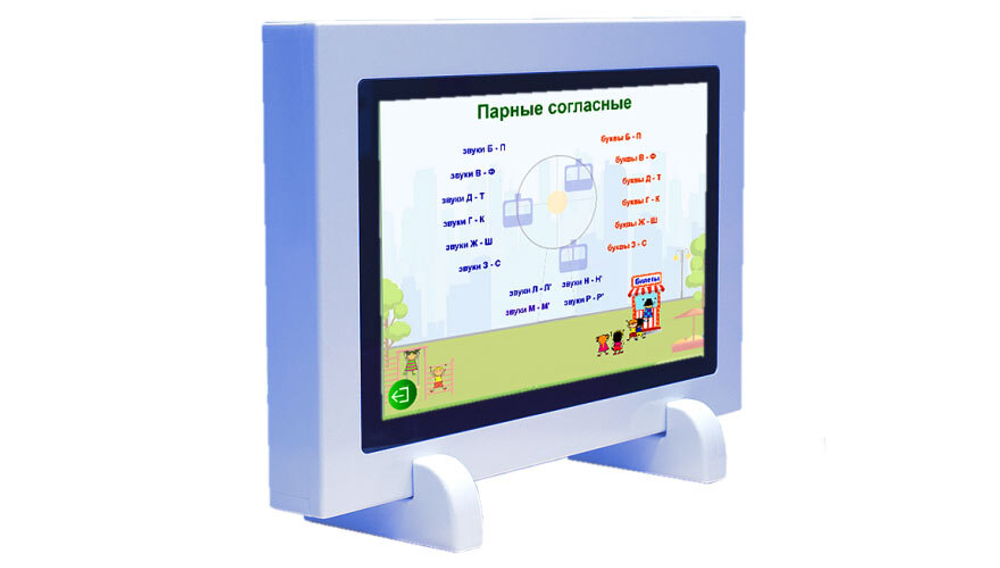 - оборудование с сенсорным антивандальным экраном для проведения ярких, результативных занятий с детьми 4-6 лет