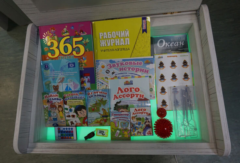 - Сундучок логопеда «Антошка», в состав которого включены массажные наборы, хрестоматии, лучшие методики, игры и наборы для песочной терапии