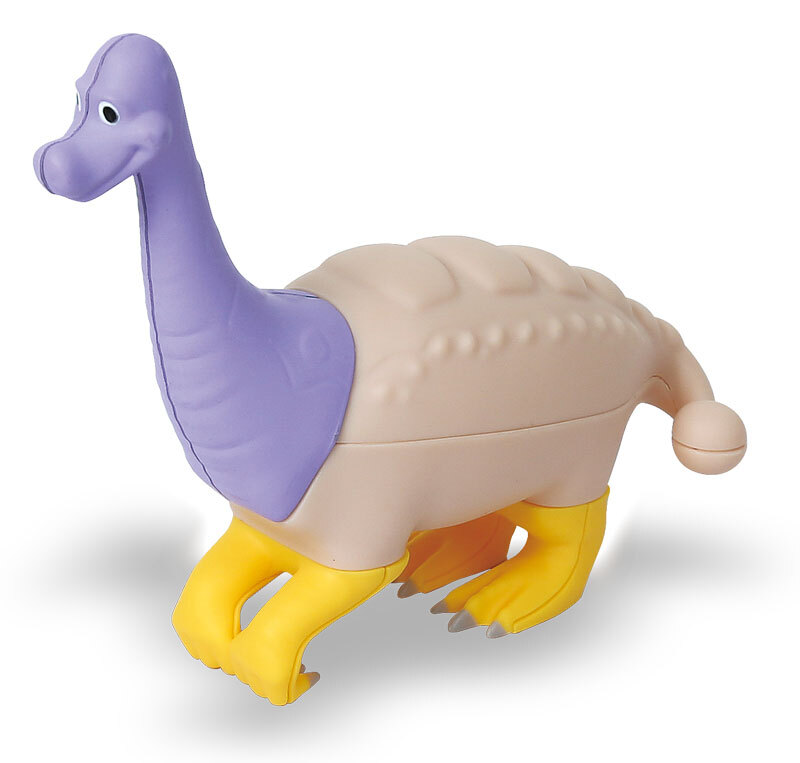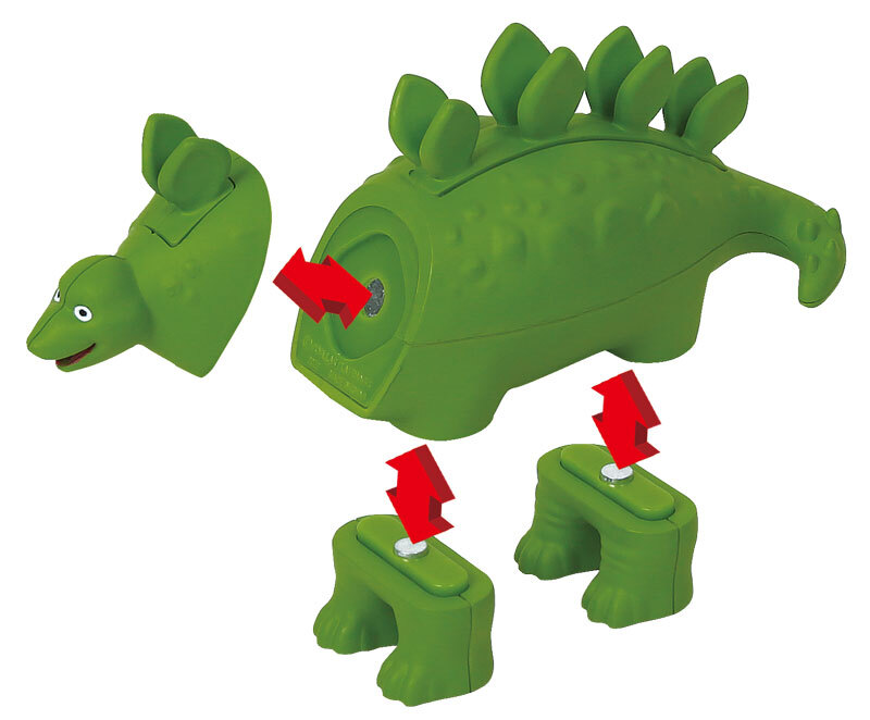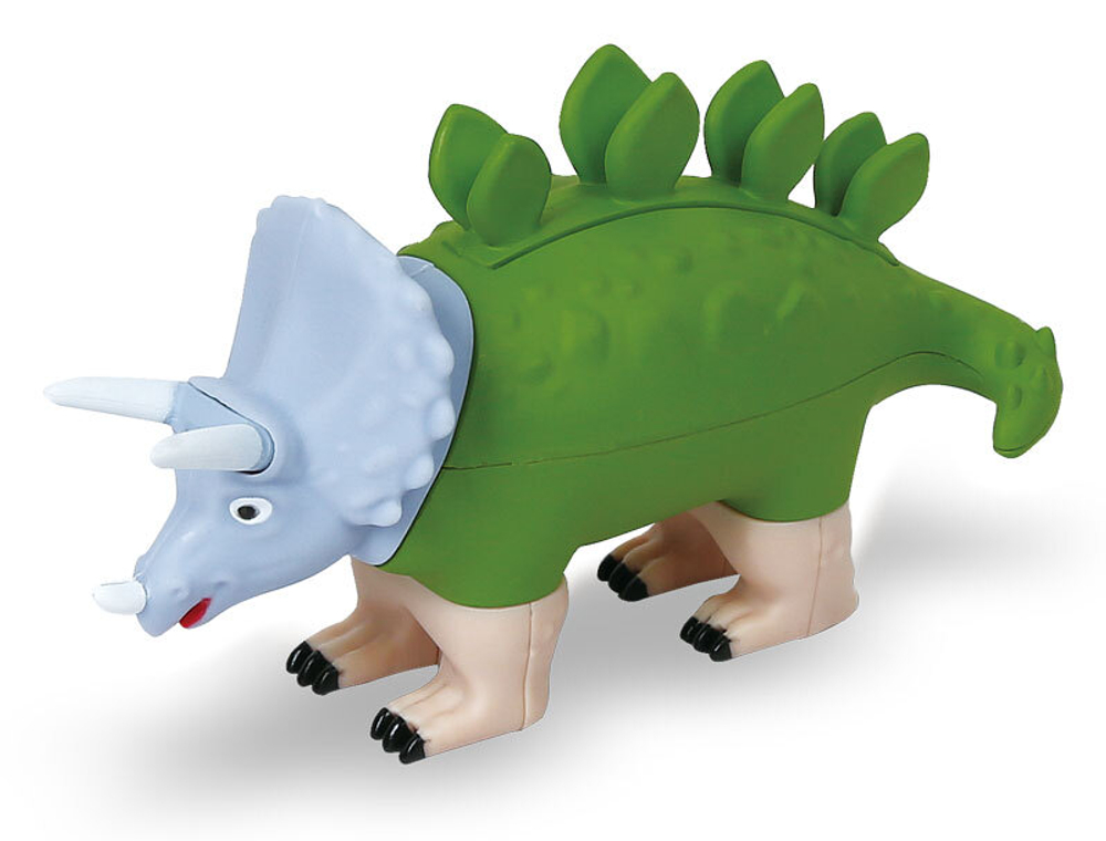 Состав: 27 деталей - головы, туловища, пары ног у моделей динозавров (бронтозавр, паразауролоф, птеродактиль, тираннозавр, трицератопс, анкилозавр, стегозавр).