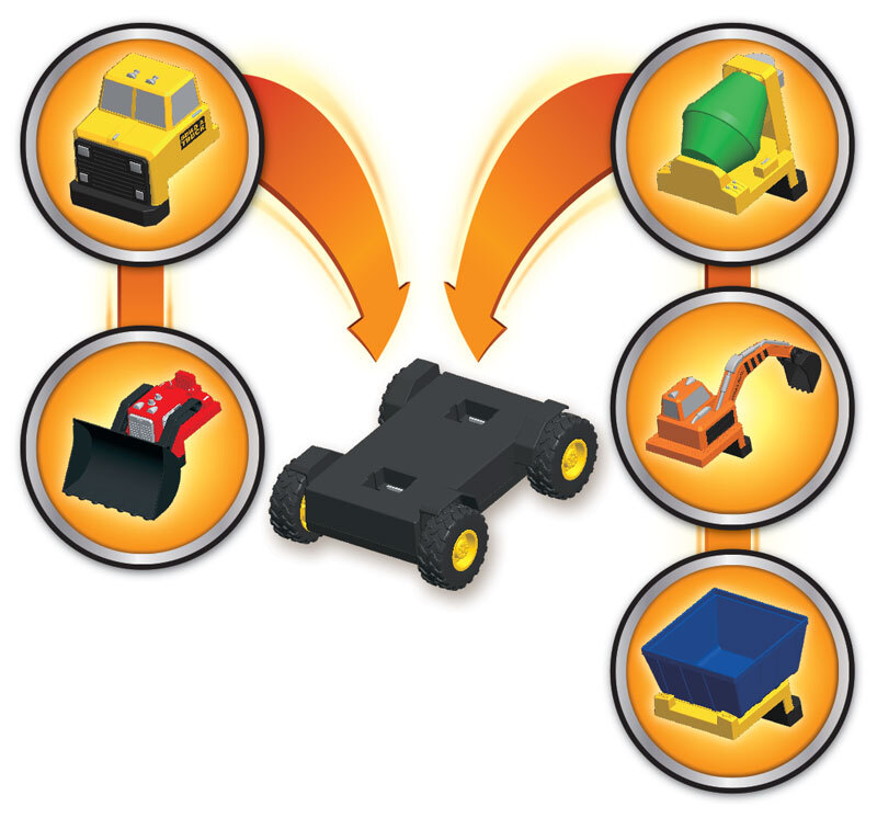 Эти привлекательные крупные модели грузовиков созданы для самых юных конструкторов. Модели создаются из ярких деталей, которые хорошо держатся друг с другом, легко собираются и разбираются благодаря элементам с применением магнитов. Вы можете создать самые разнообразные грузовики, включая самосвал, бетономешалка, экскаватор, автопогрузчик. И каждый из них едет на настоящих резиновых шинах!