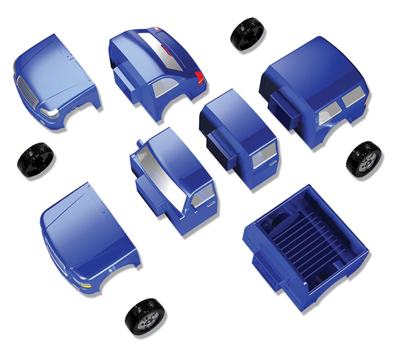 Вы почувствуете себя маленьким механиком, когда будете смешивать и сочетать одиннадцать магнитных элементов машин, чтобы построить купе, седан, пикап, кабину экипажа, спортивный внедорожник или полноразмерный внедорожник.